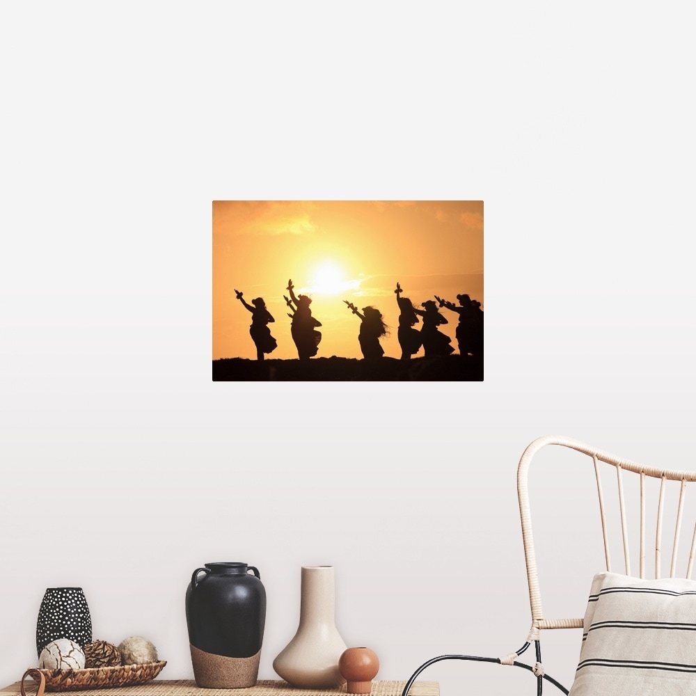 "Silhouette of hula dancers at sunrise Molokai Hawaii" Poster Print - Multi