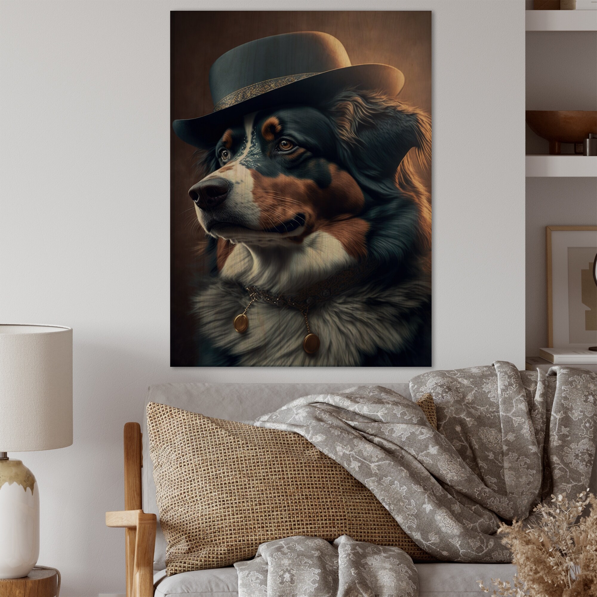 Designart 'Mafia Dog IV' Animals Dog Wood Wall Art - Natural Pine Wood