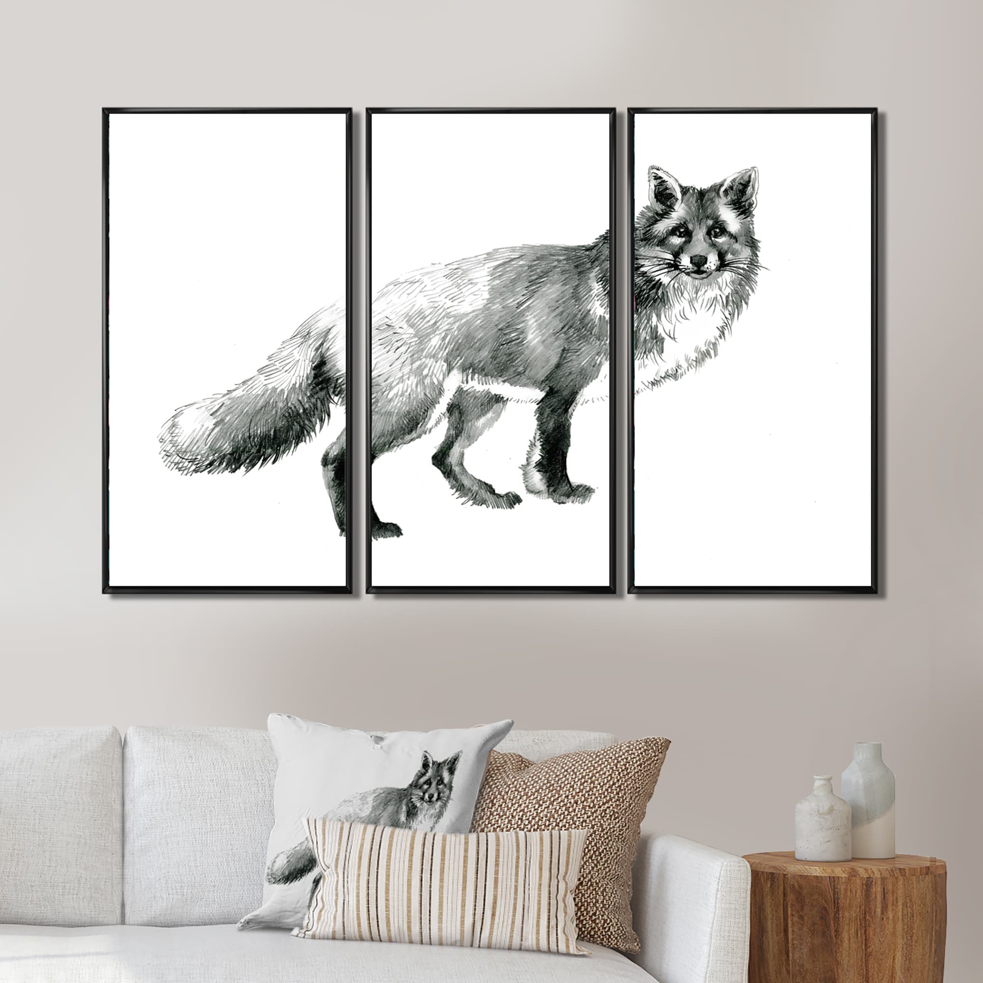 Designart "Monochrome Portrait Fox" Farmhouse Framed Canvas Wall Art Set of 3 - 4 Colors of Frames