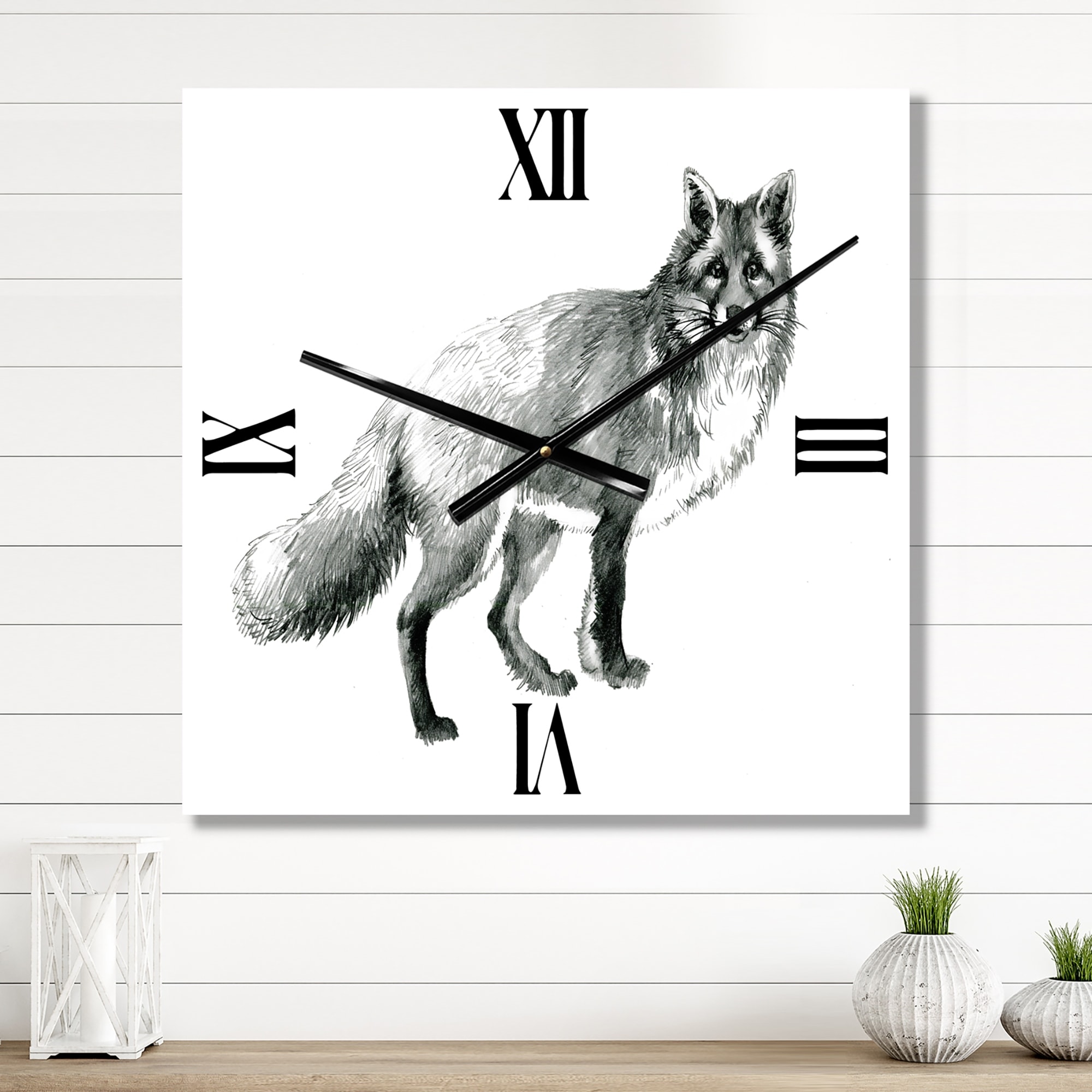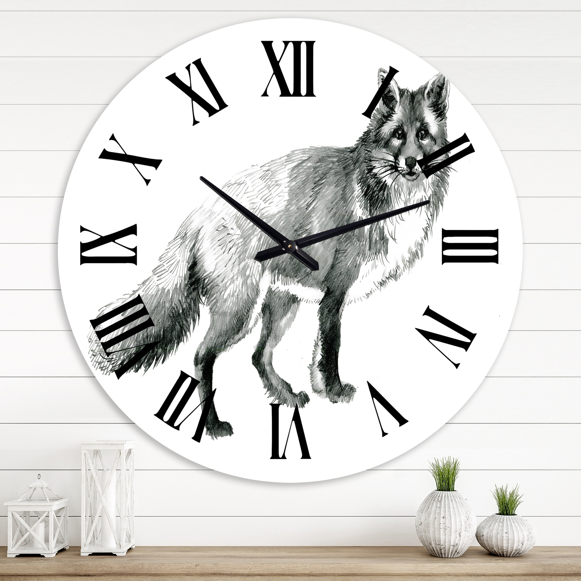 Designart 'Monochrome Portrait Fox' Farmhouse Wall Clock Decor
