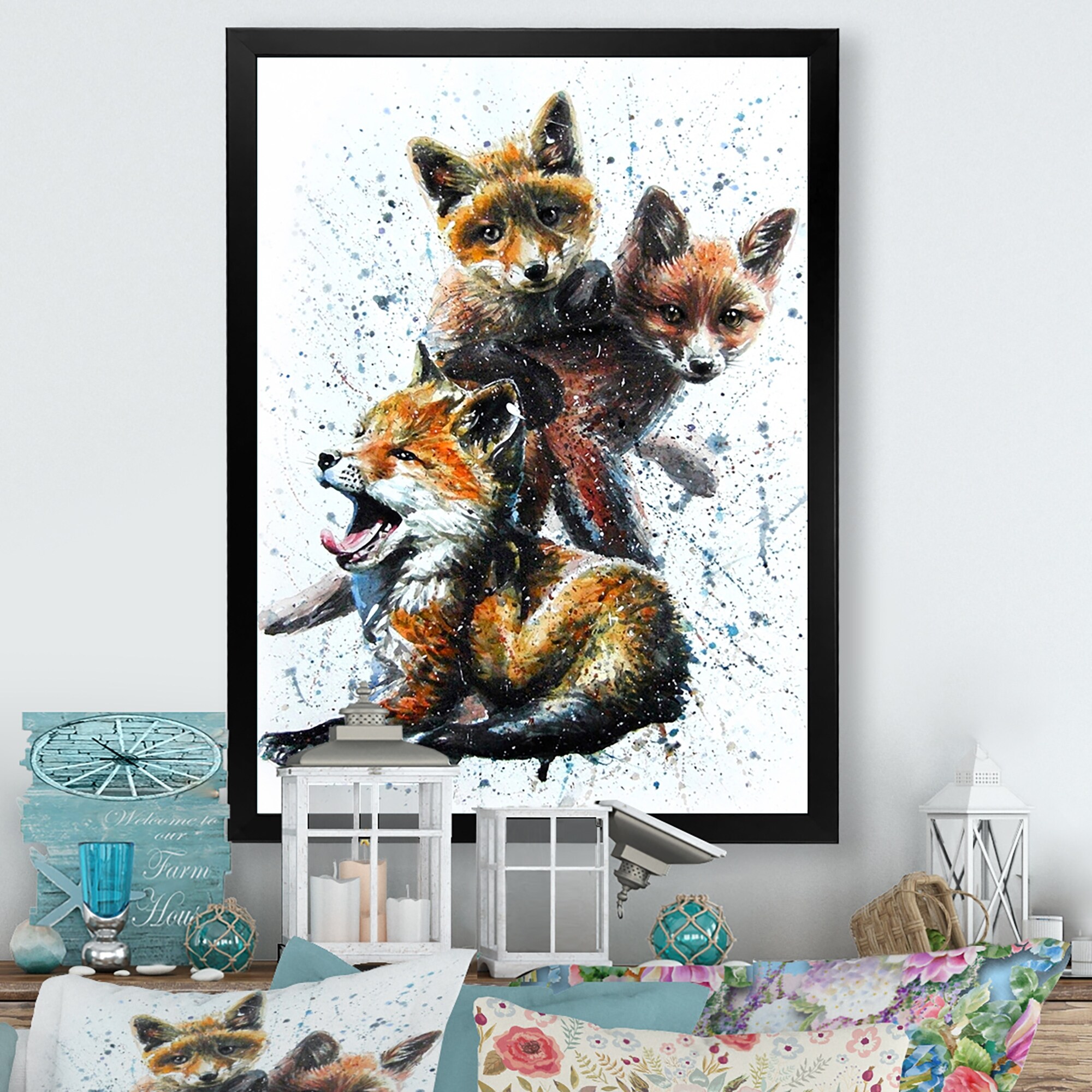 Designart "Little Foxes Painting" Traditional Framed artwork