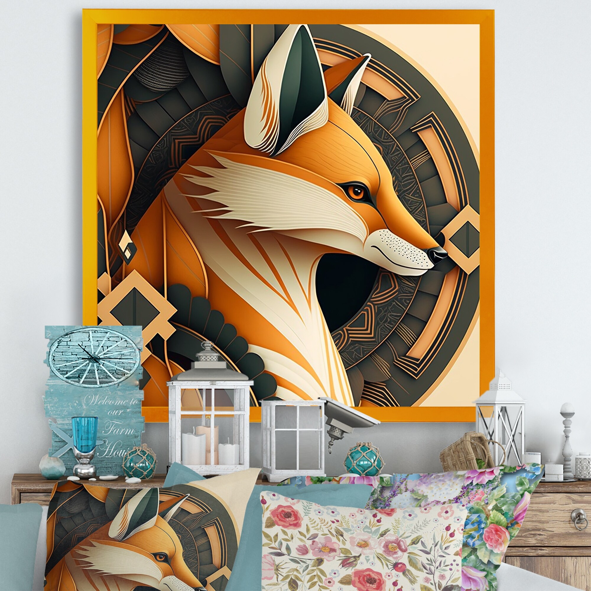 Designart "Orange Fox Guardian" Animals Fox Framed Wall Art Living Room