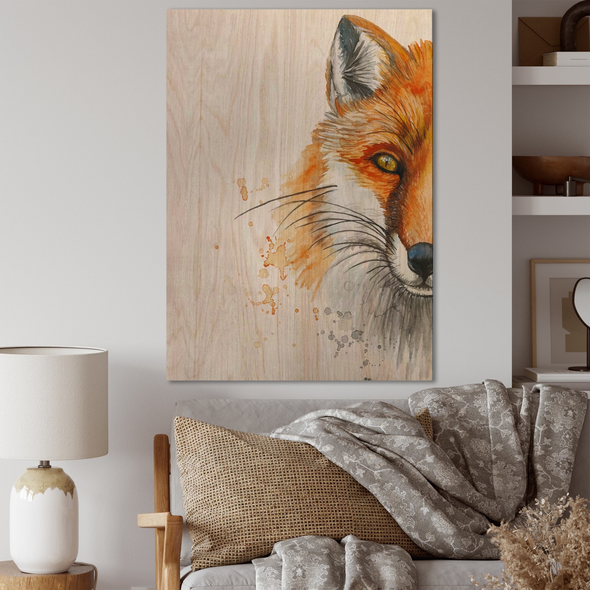 Designart 'Portrait Of a Young Fox' Traditional Wood Wall Art Décor - Natural Pine Wood