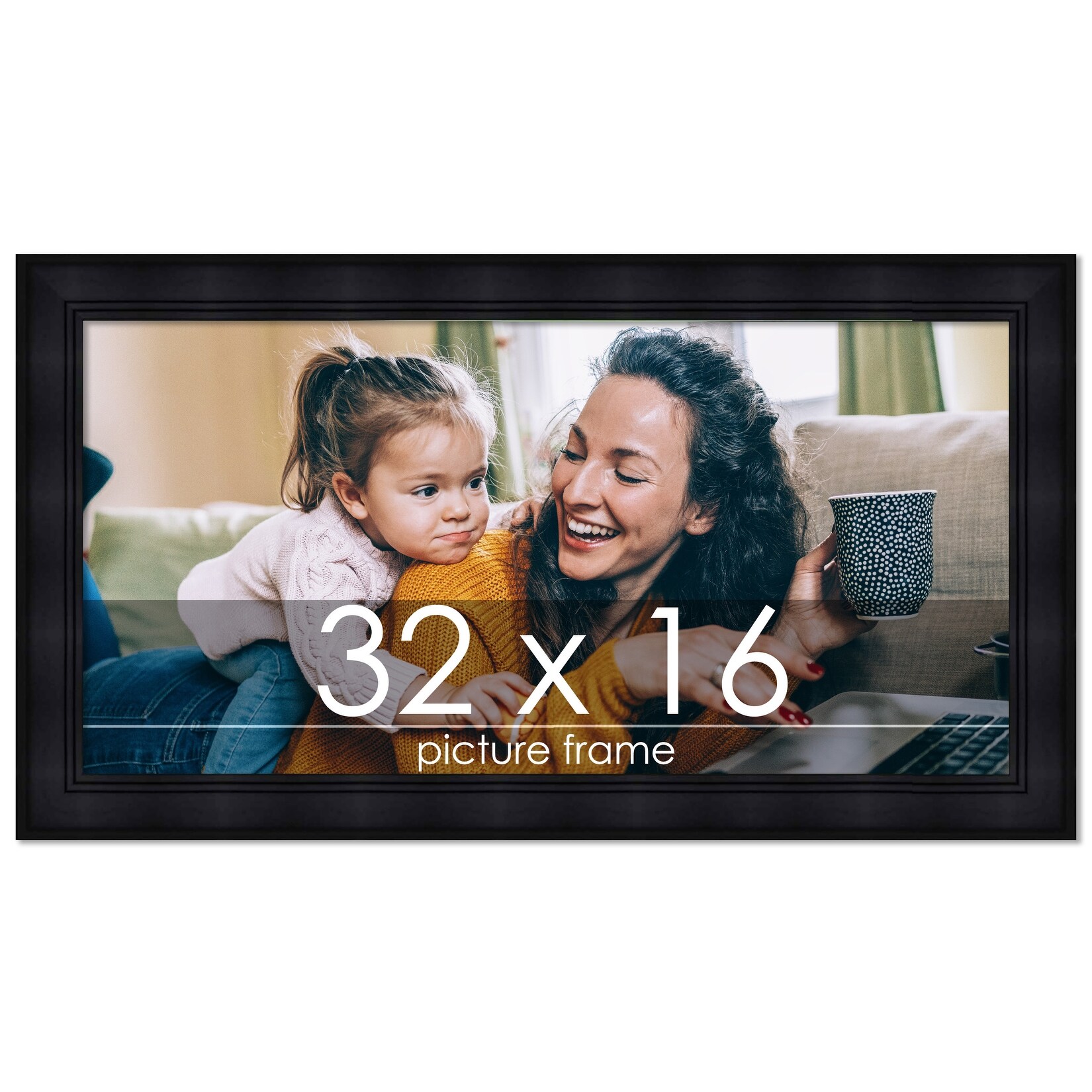 32x16 Frame Black Contemporary Wood Picture Frame with UV Resistant Acrylic, Acid-Free Foam Board Backing, & Hardware