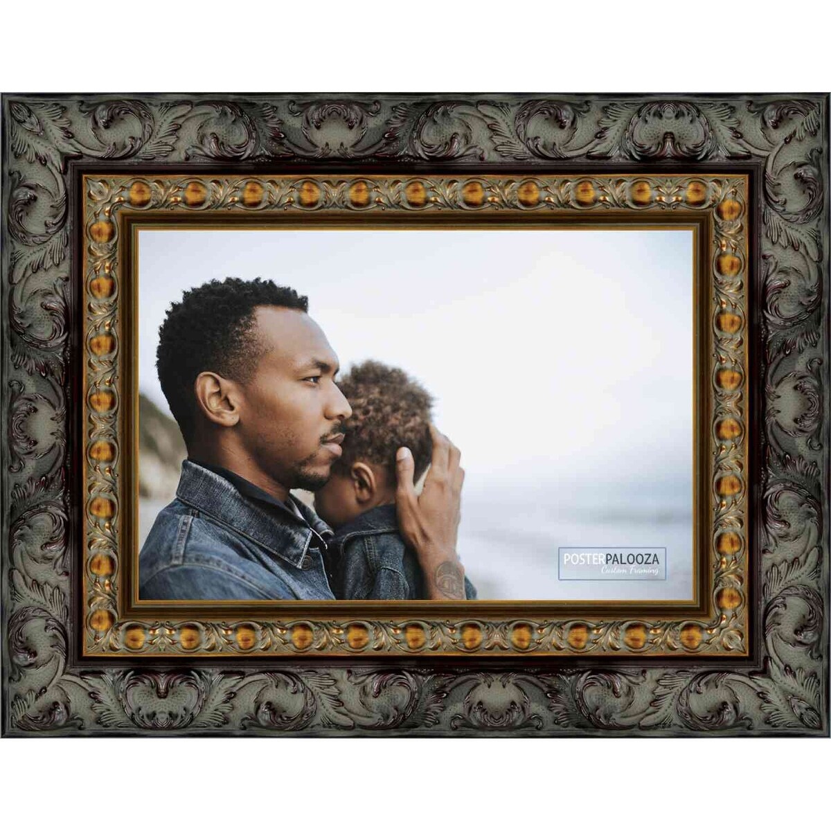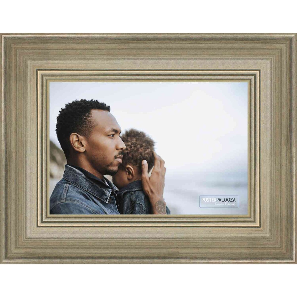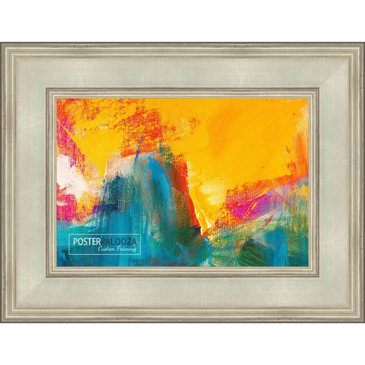 27x40 Traditional Silver Wood Picture Frame with UV Acrylic, Foam Board Backing, & Hardware