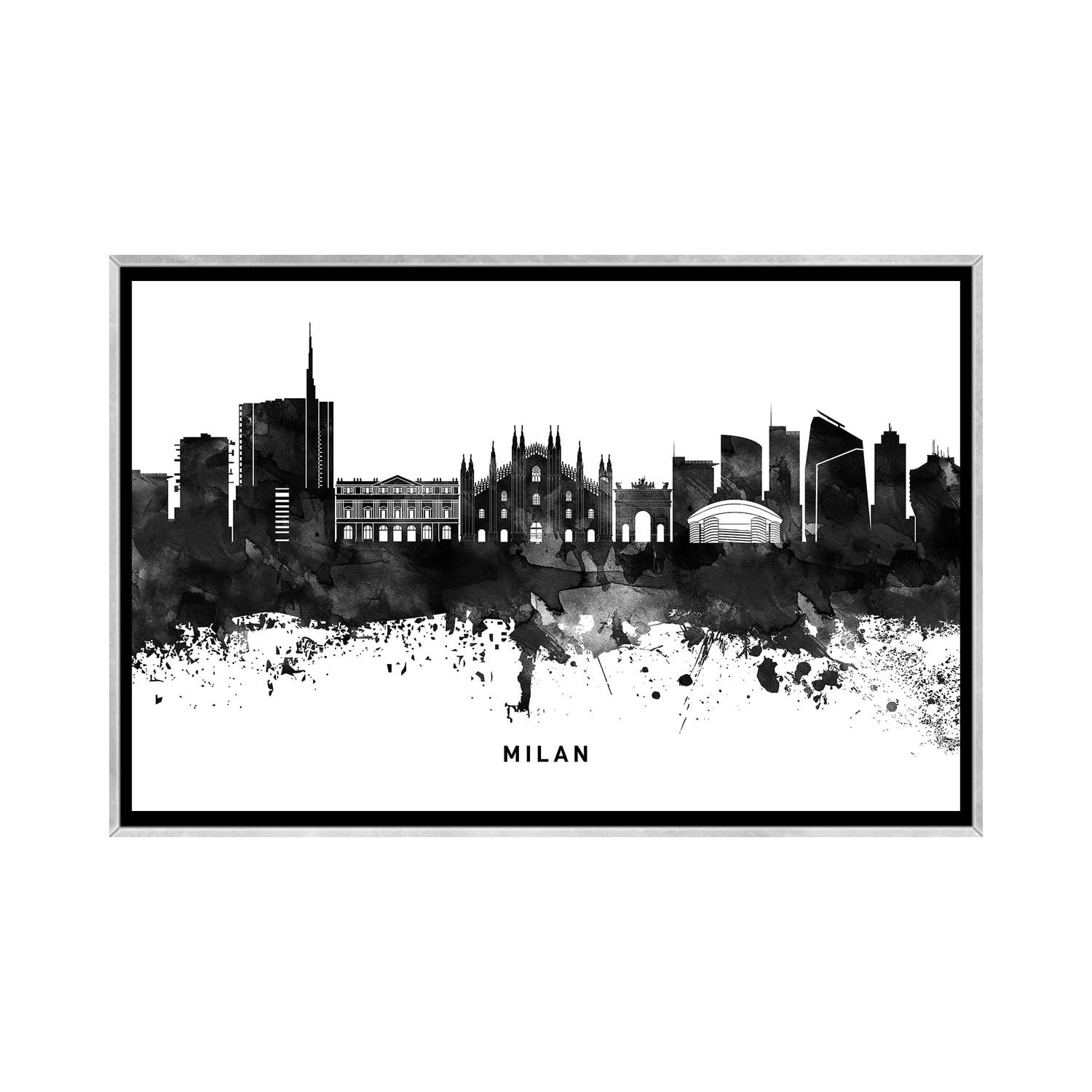 iCanvas "Milan Skyline Black & White" by WallDecorAddict Framed