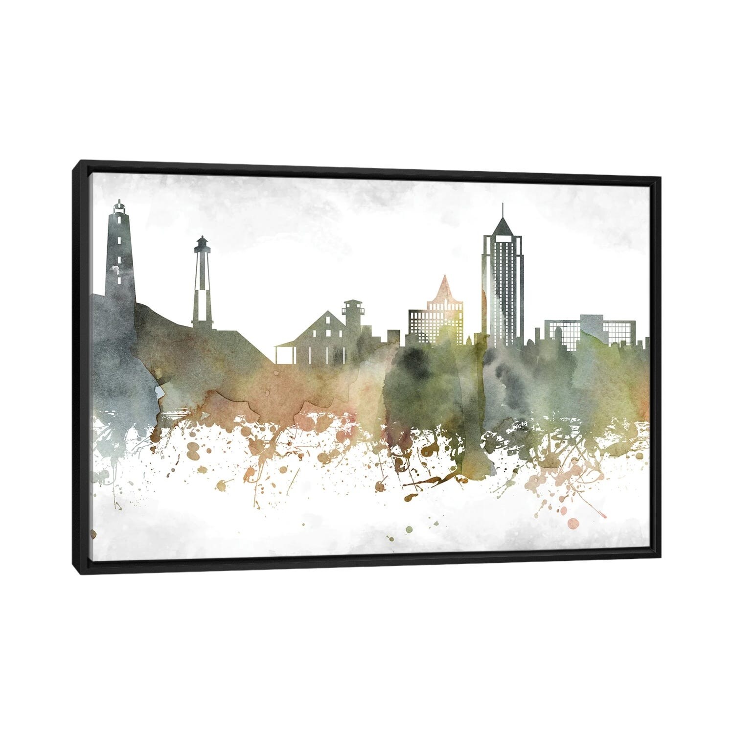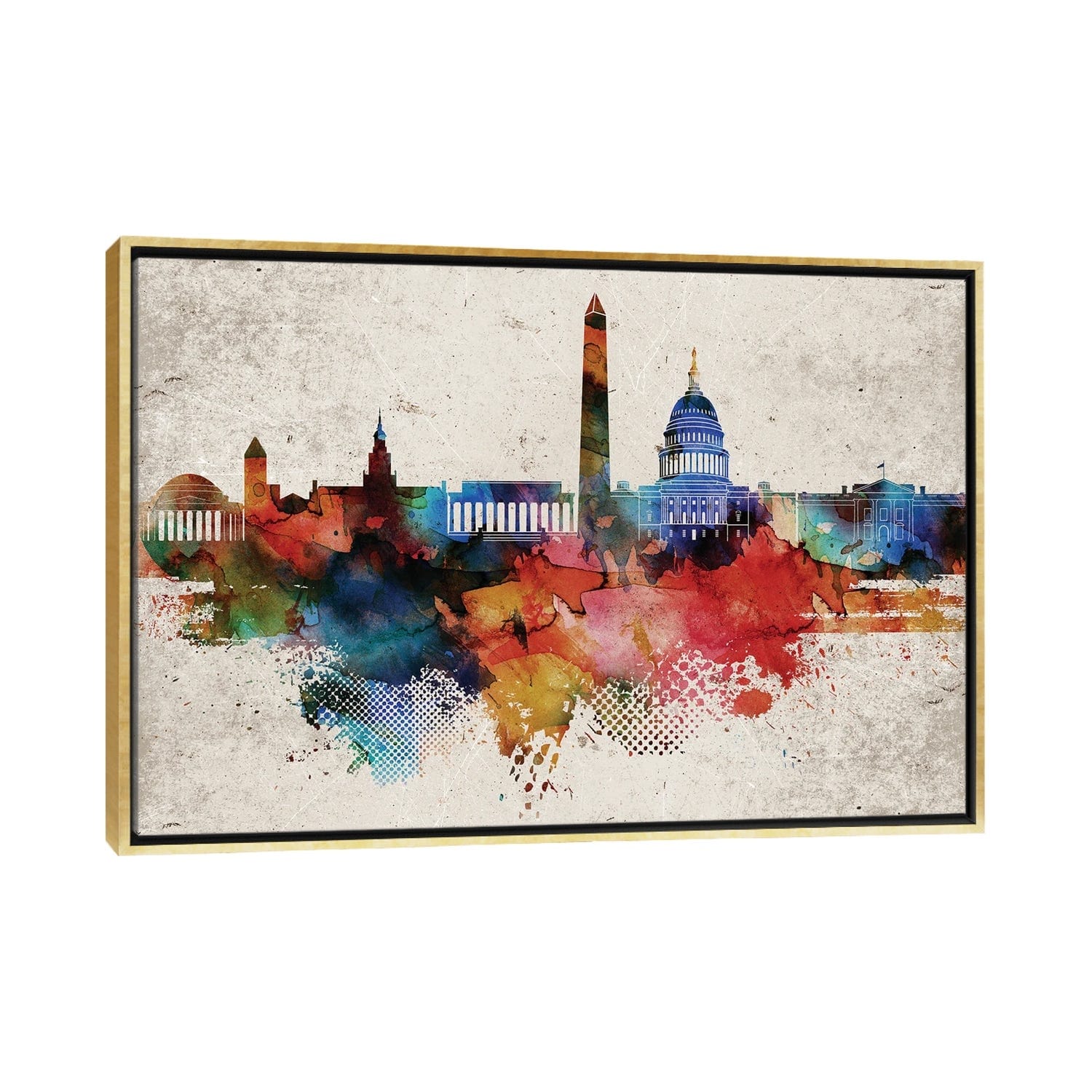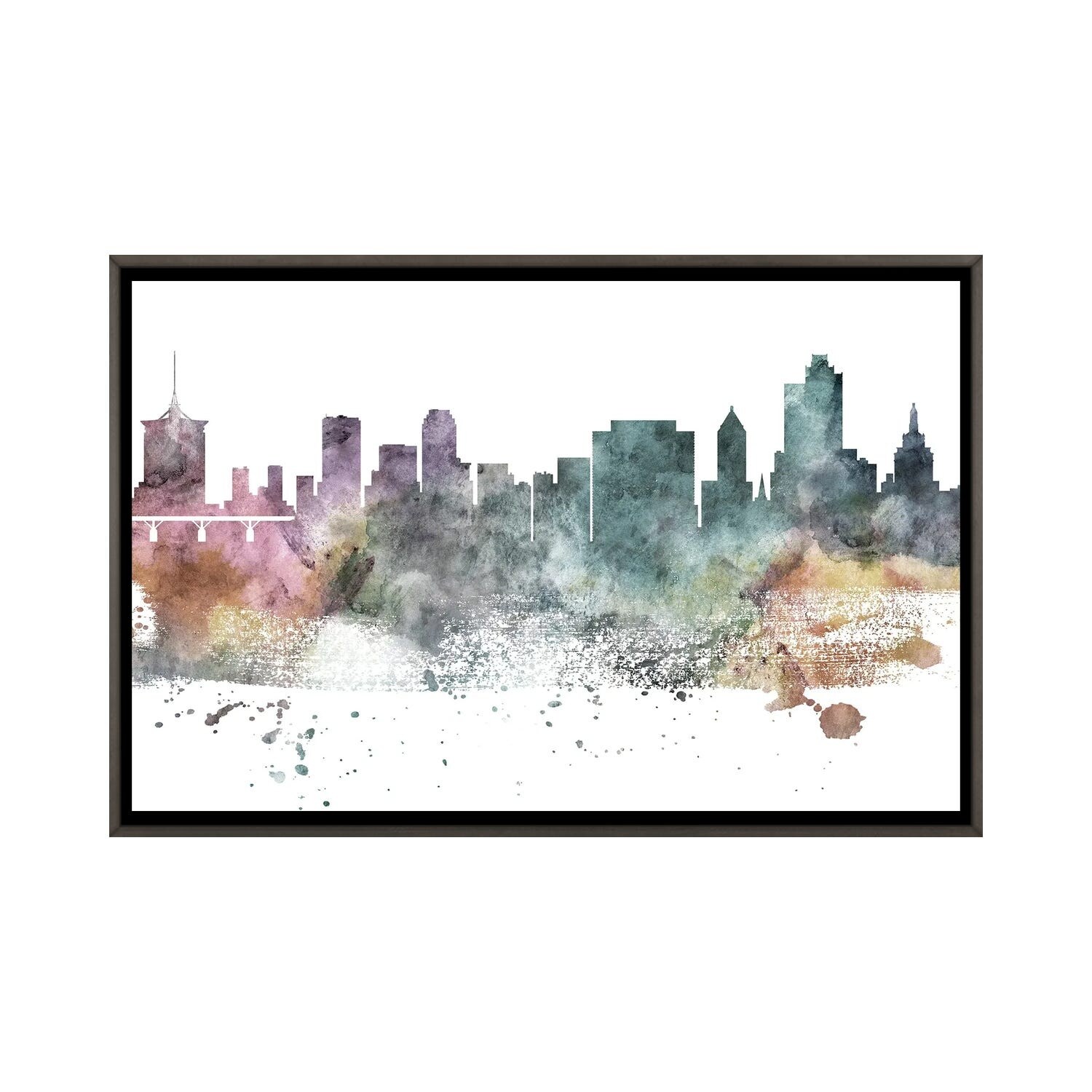 iCanvas "Dallas Colorful Watercolor Skyline" by WallDecorAddict Framed Canvas Print