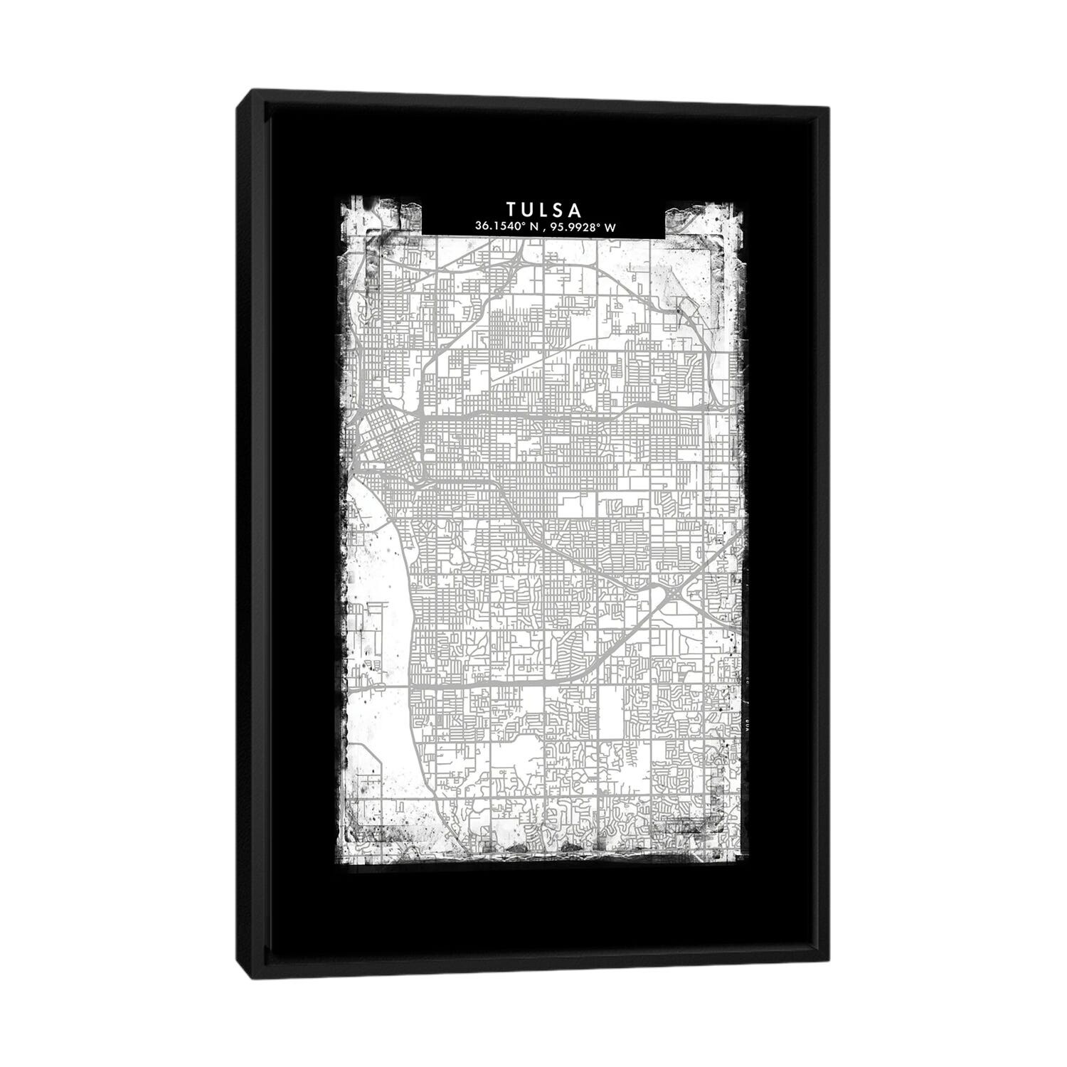 iCanvas "Tulsa City Map Black White Grey Style" by WallDecorAddict Framed Canvas Print
