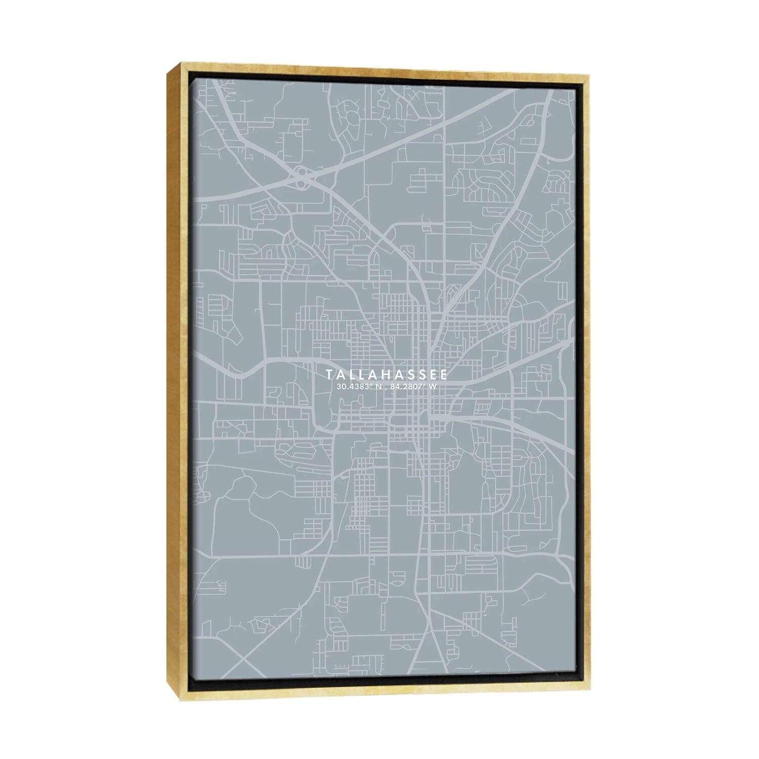 iCanvas "Tallahassee, Florida City Map Grey Blue Style" by WallDecorAddict Framed