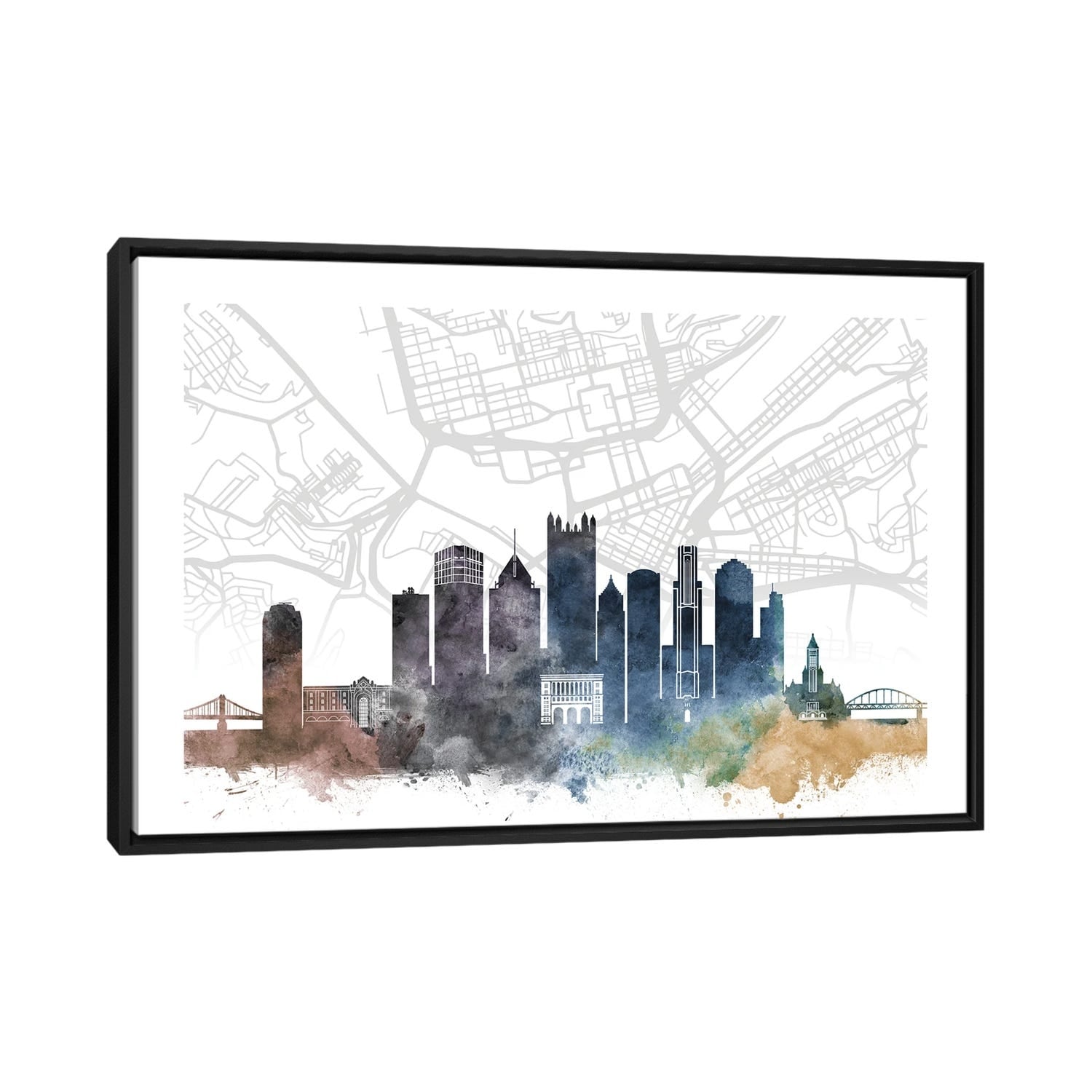 iCanvas "Pittsburgh City Map Abstract" by WallDecorAddict Framed Canvas Print