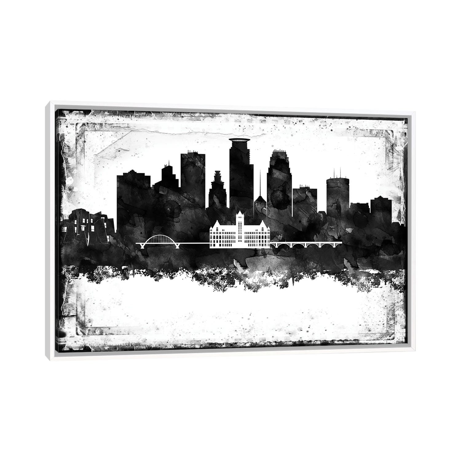 iCanvas "Minneapolis Black And White Framed Skylines" by WallDecorAddict Framed