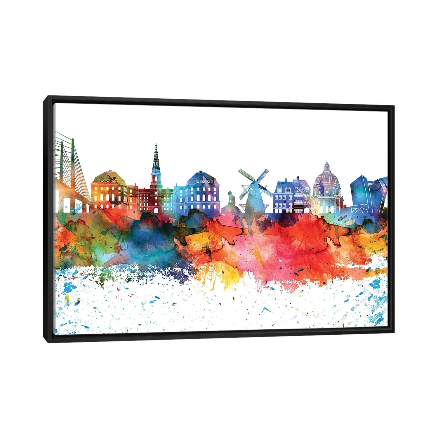 iCanvas "Copenhagen Colorful Watercolor Skyline" by WallDecorAddict Framed Canvas Print