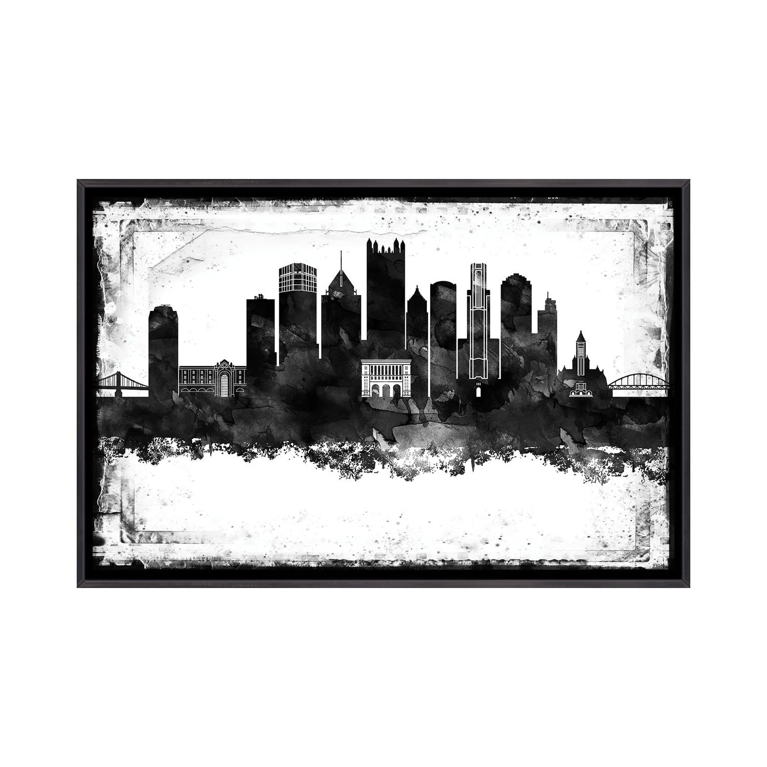 iCanvas "Pittsburgh Black And White Framed Skylines" by WallDecorAddict Framed