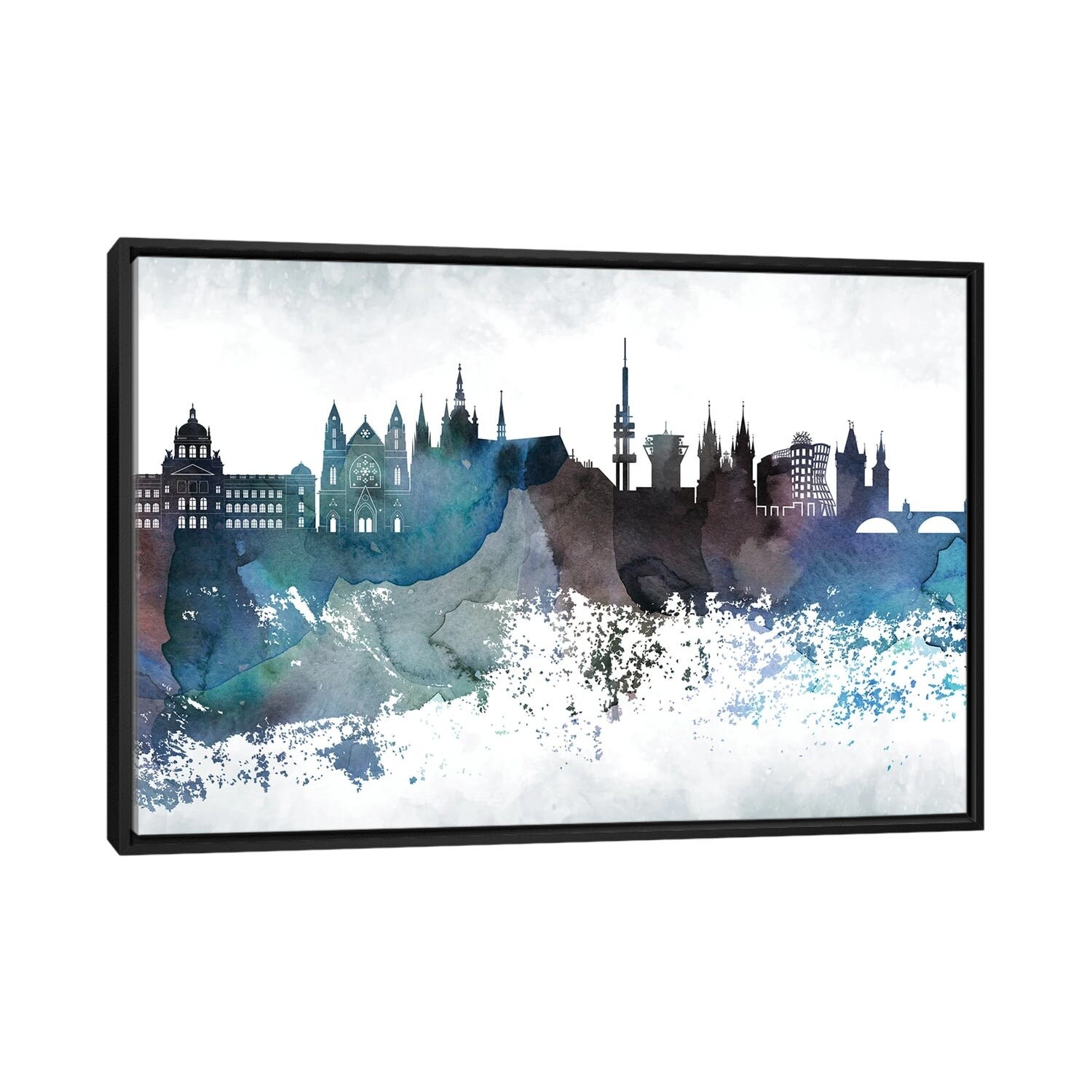 iCanvas "Prague Bluish Skyline" by WallDecorAddict Framed Canvas Print