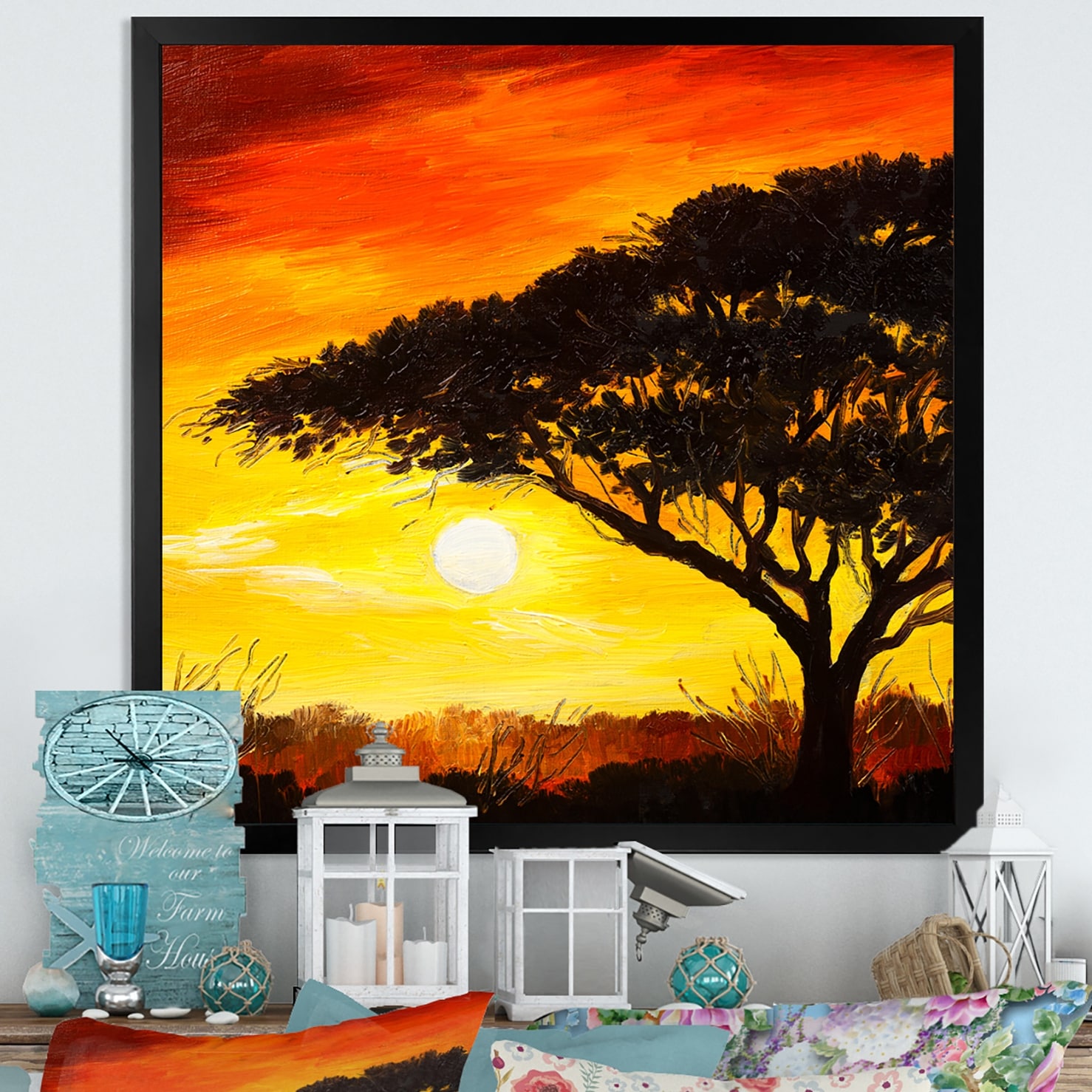 Designart "African Tree Under Wild Sunset" Traditional Framed Wall Art