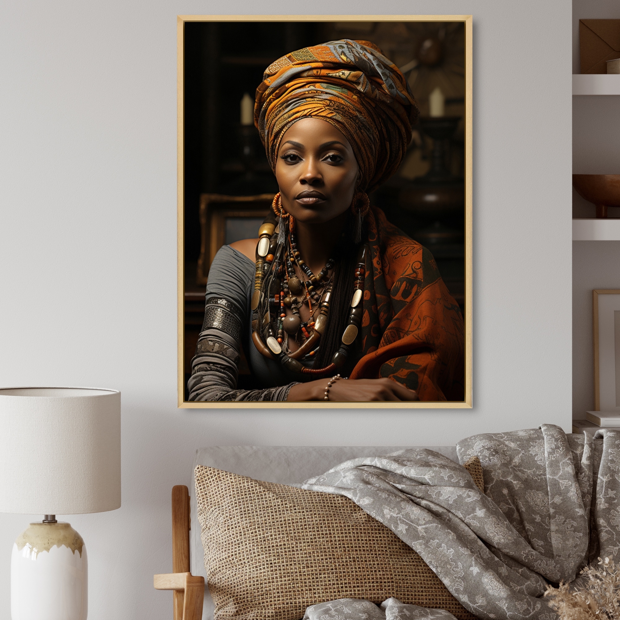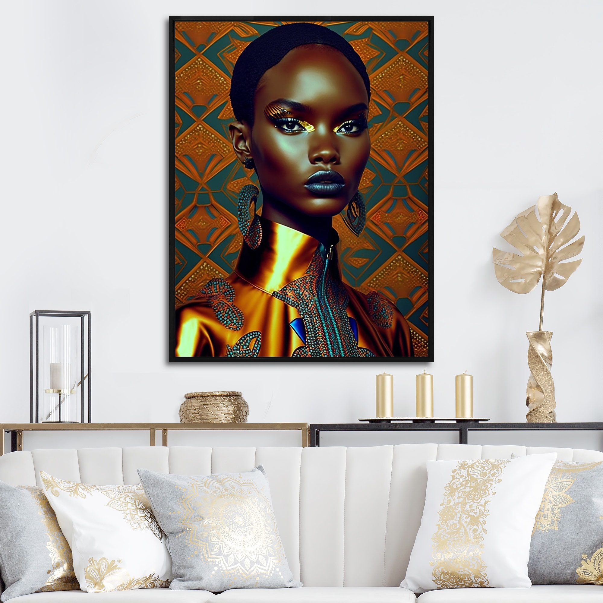Designart "Classy Portrait of Elegant African Lady I" African American Framed Canvas Wall Art Print