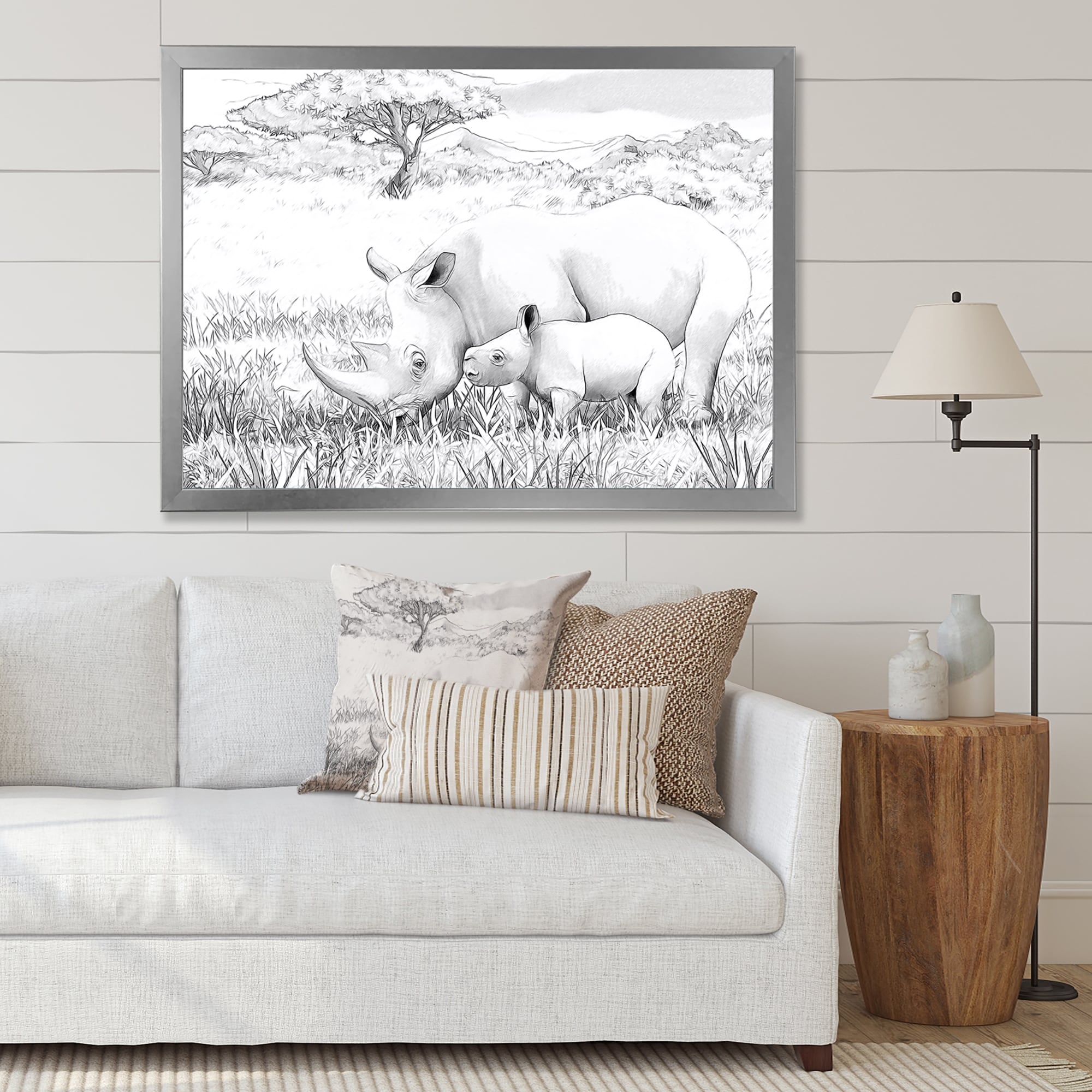Designart "Rhino In African Safari" Traditional Framed Art Print