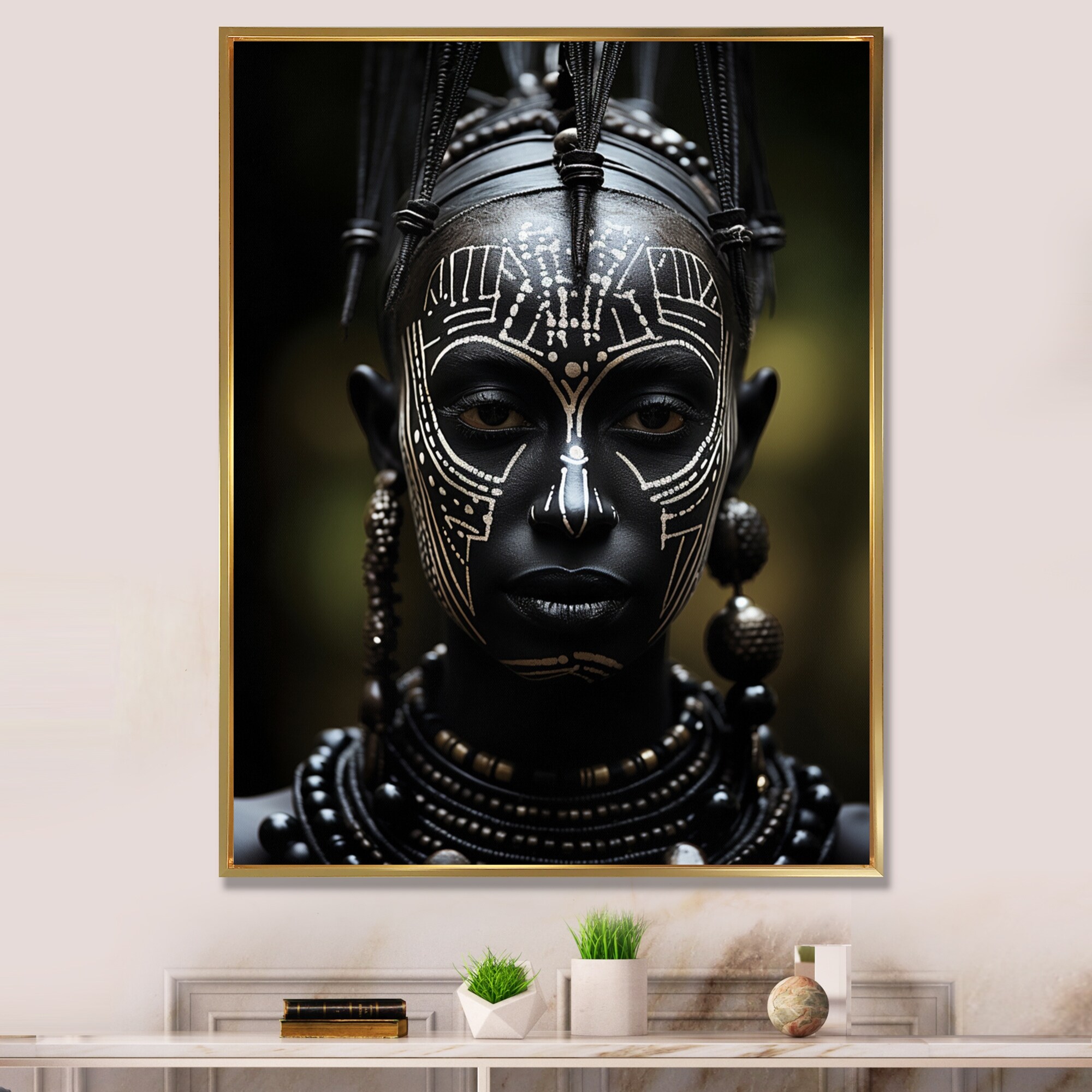 Designart "Tribal African Woman V" African American Woman Framed Wall Art Prints