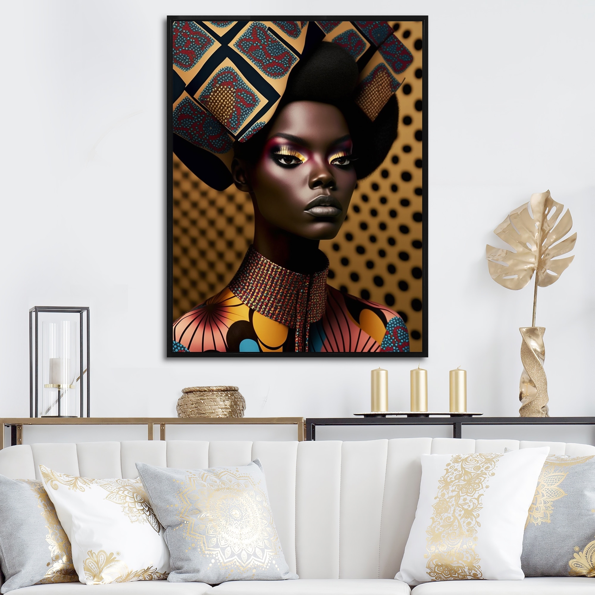 Designart "Portrait Of Glamorous African Lady VII" African American Framed Canvas Wall Art Print