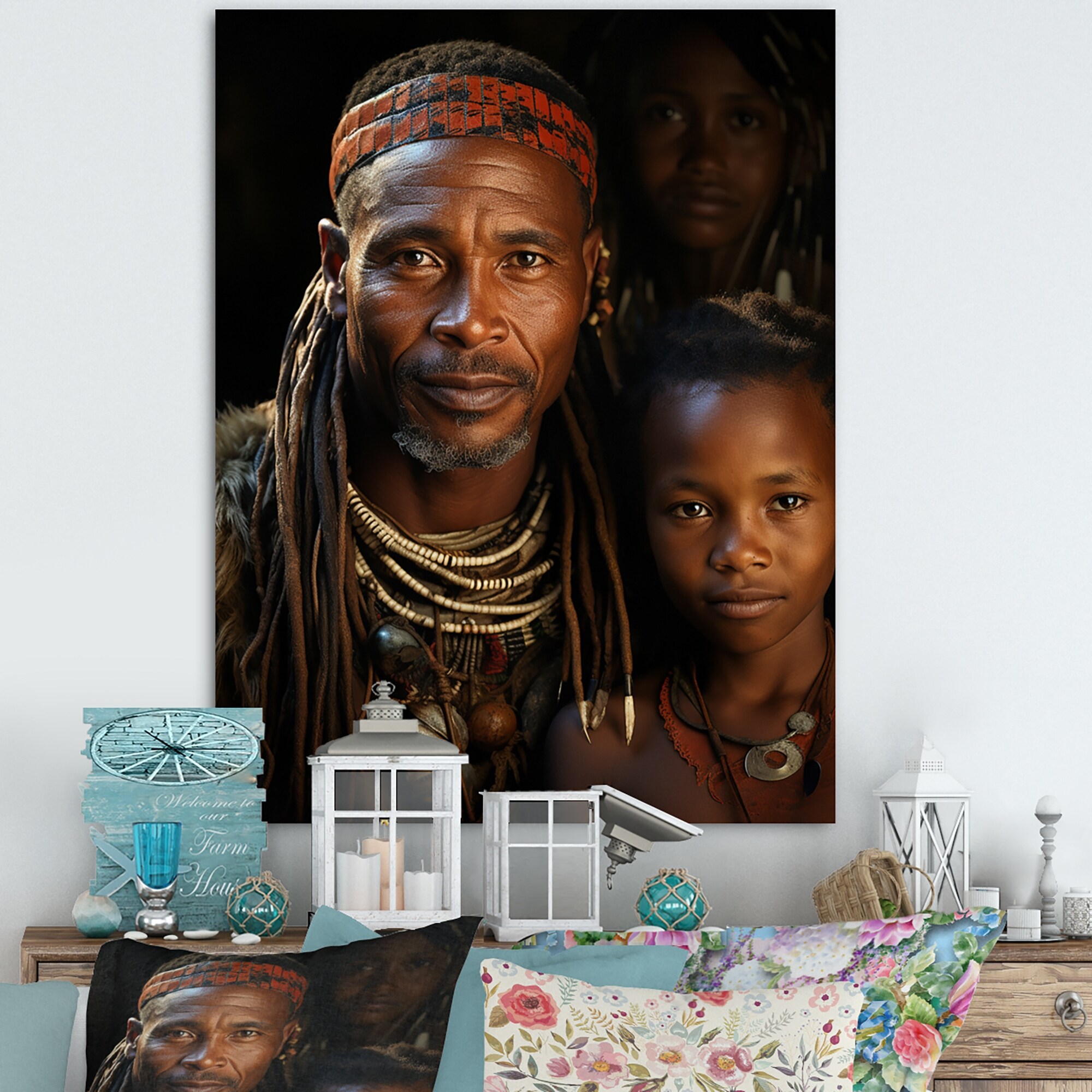 Designart "Tribal African Woman IV" African American Woman Framed Canvas Wall Art