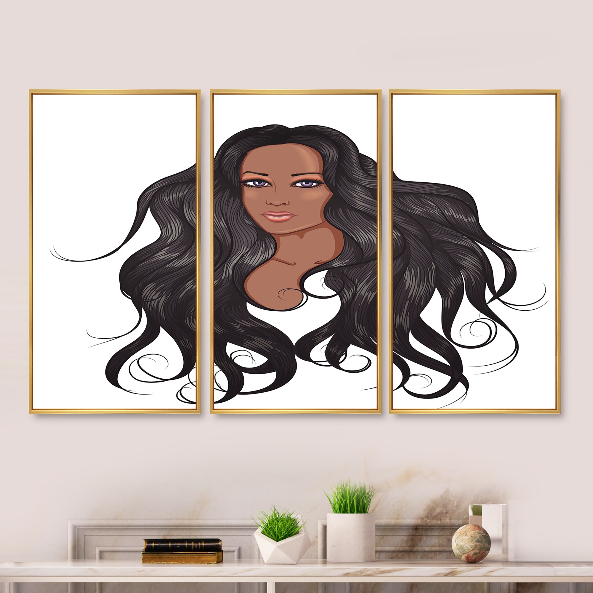 Designart "Portrait Of African American Woman XV" Modern Framed Art Set of 3 - 4 Colors of Frames