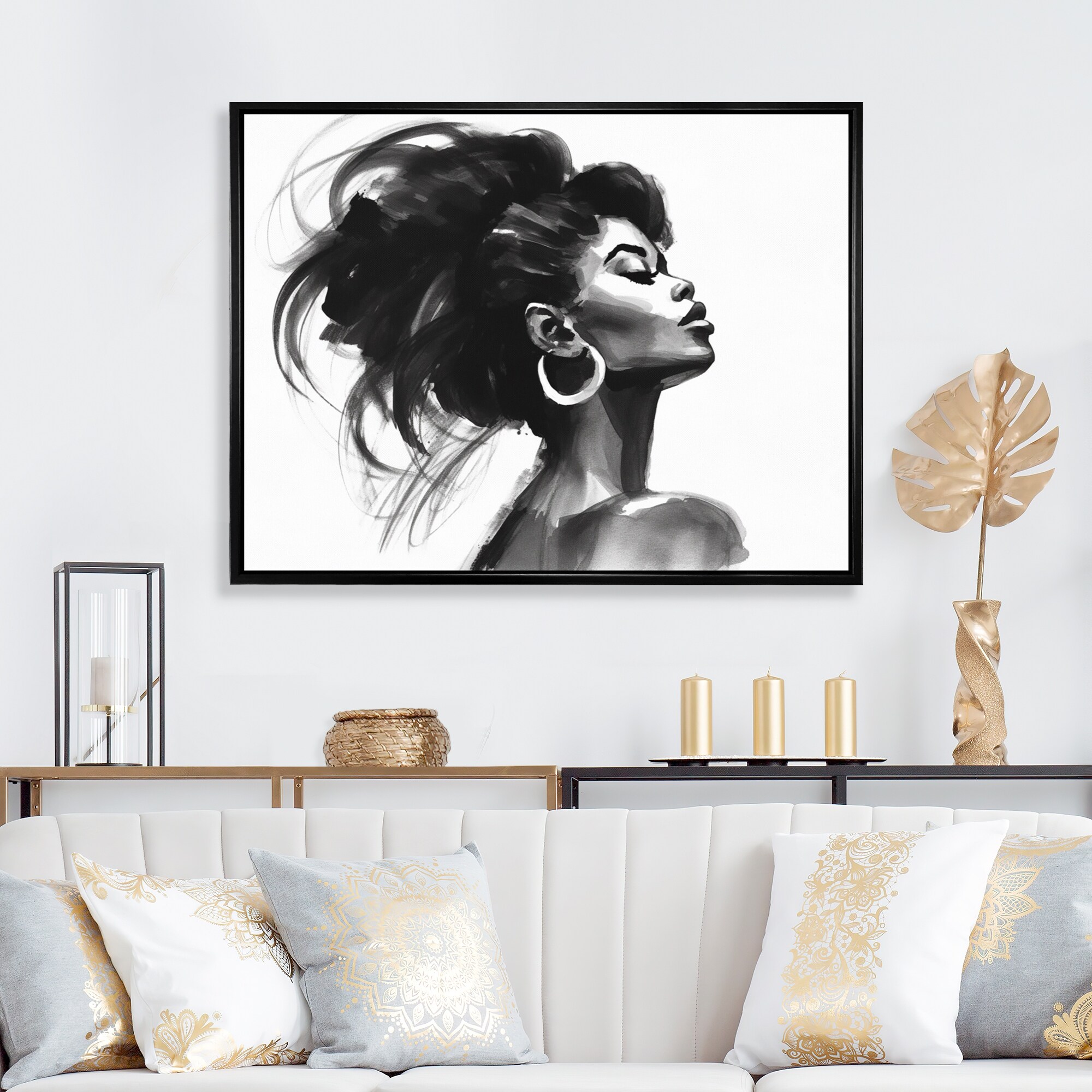 Designart "Black And White African American Woman IV" Fashion Woman Framed Wall Decor