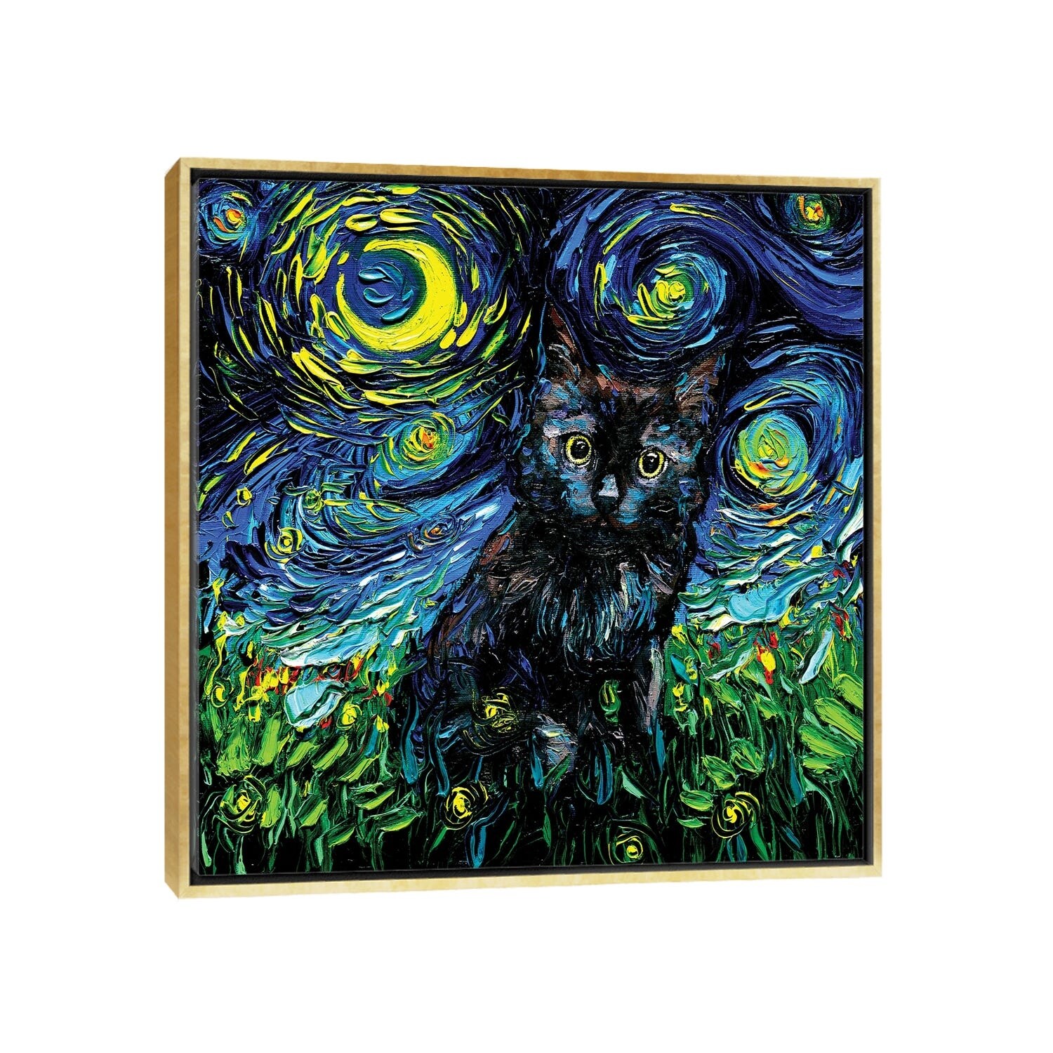 iCanvas "Black Cat Night IV" by Aja Trier Framed