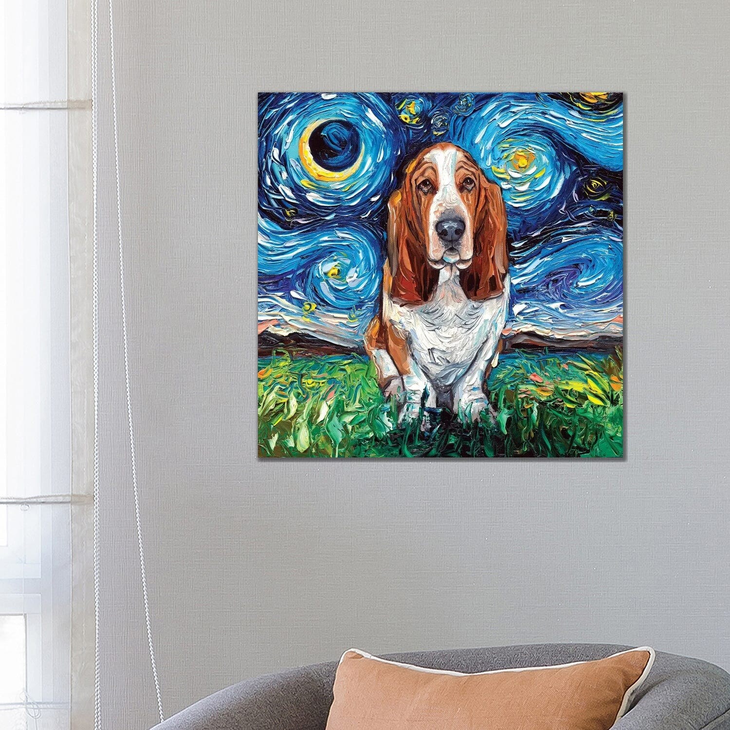 iCanvas "Basset Hound Night" by Aja Trier Canvas Print