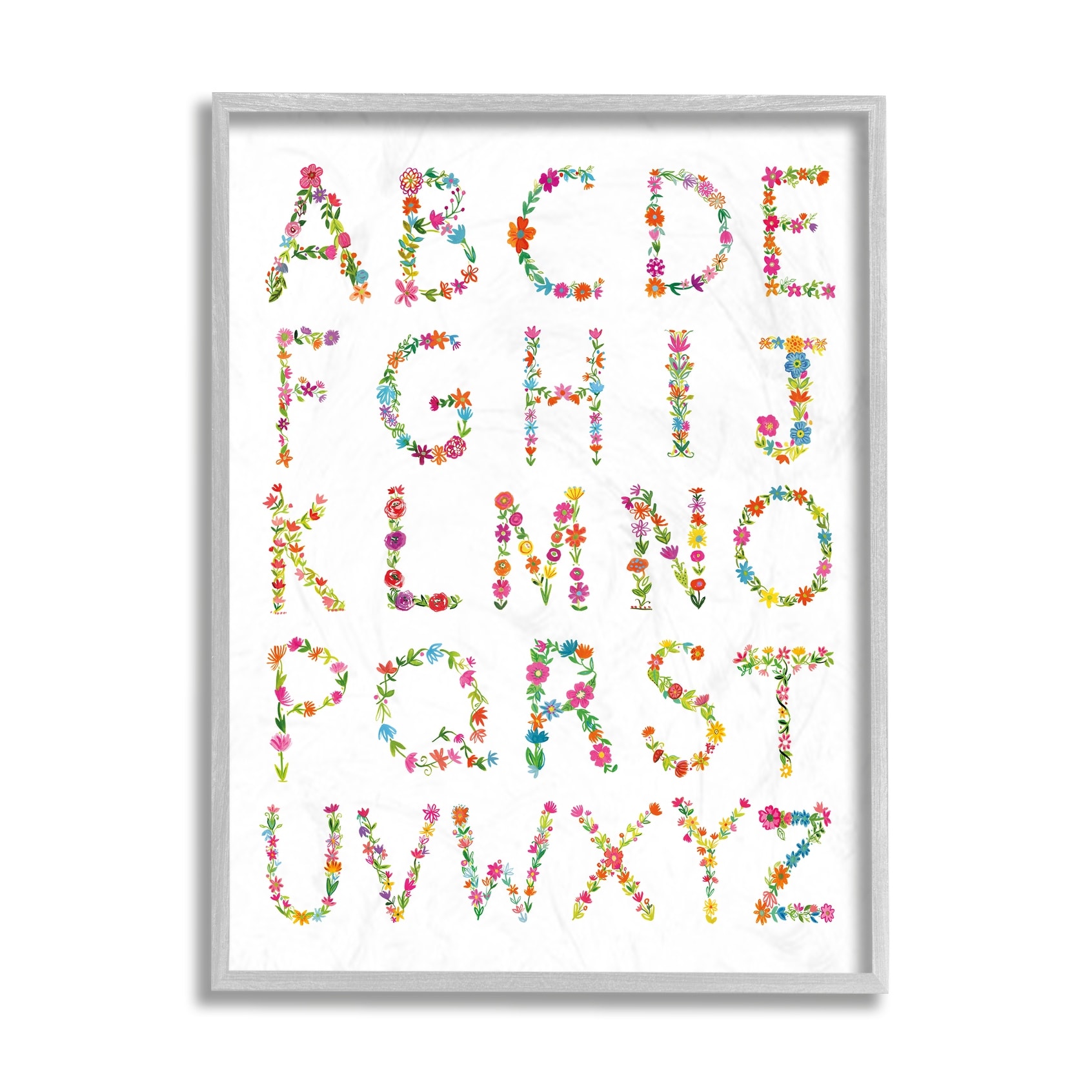 Stupell Industries Floral Pattern Alphabet Soft Chic Typography Framed Wall Art