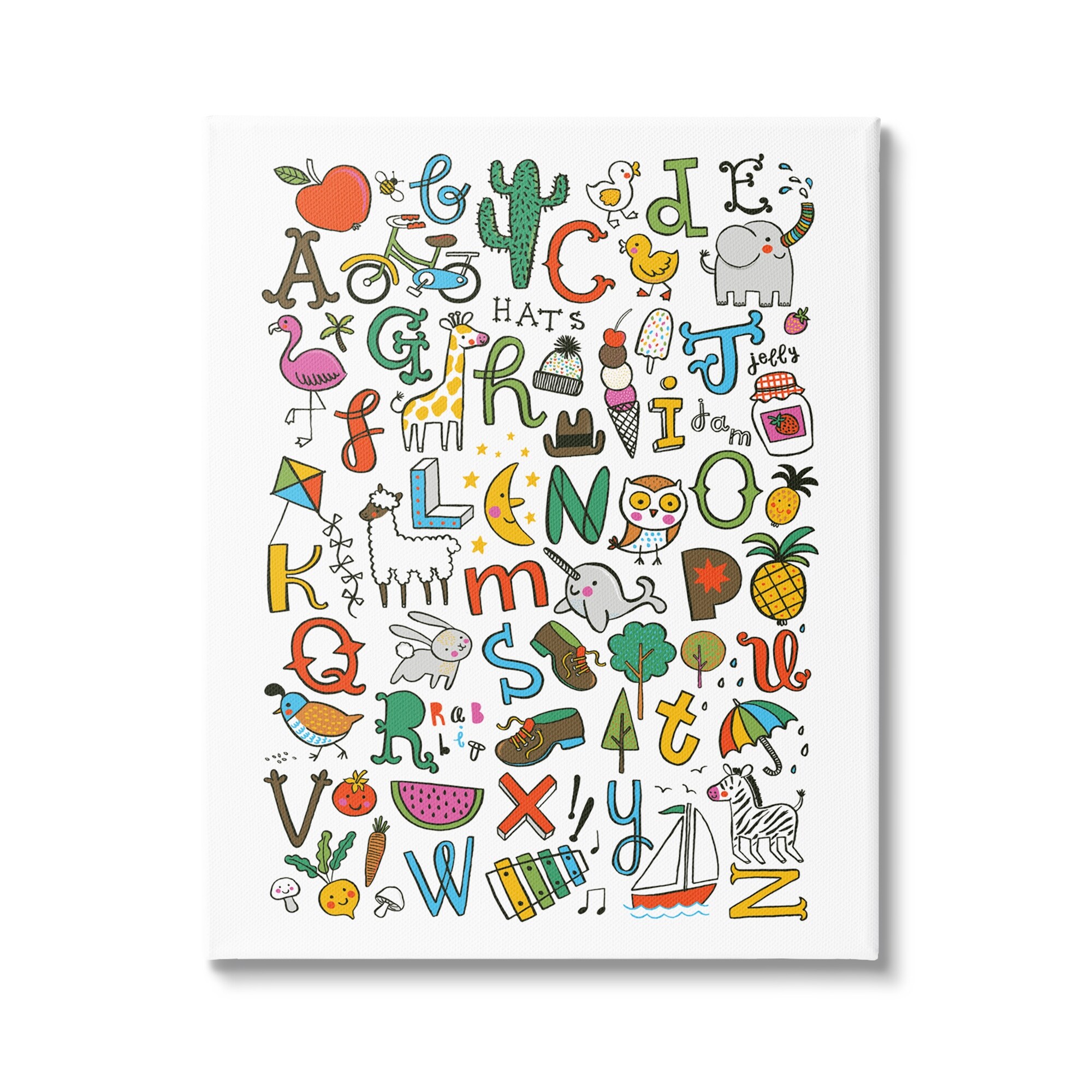 Stupell Industries Infantile Alphabet with Illustrations Educational Literature Canvas Wall Art - Multi-Color
