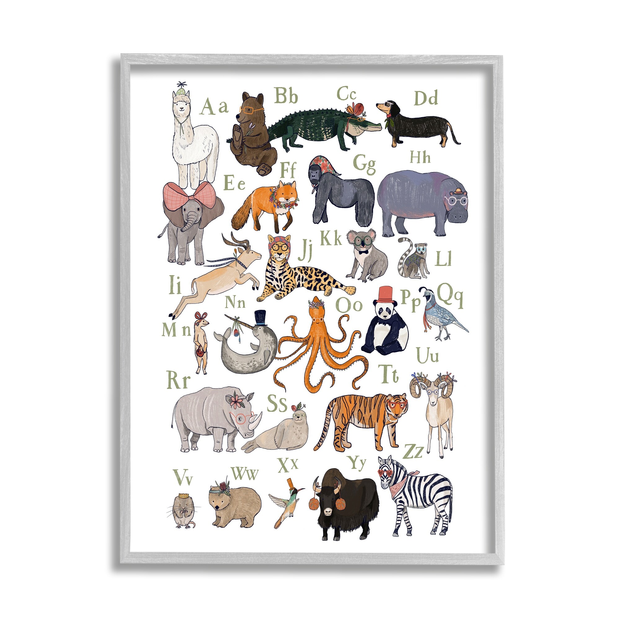 Stupell Industries Various Animal Alphabet Chart Educational Nature Wildlife Framed Wall Art, Design by Dominika Godette