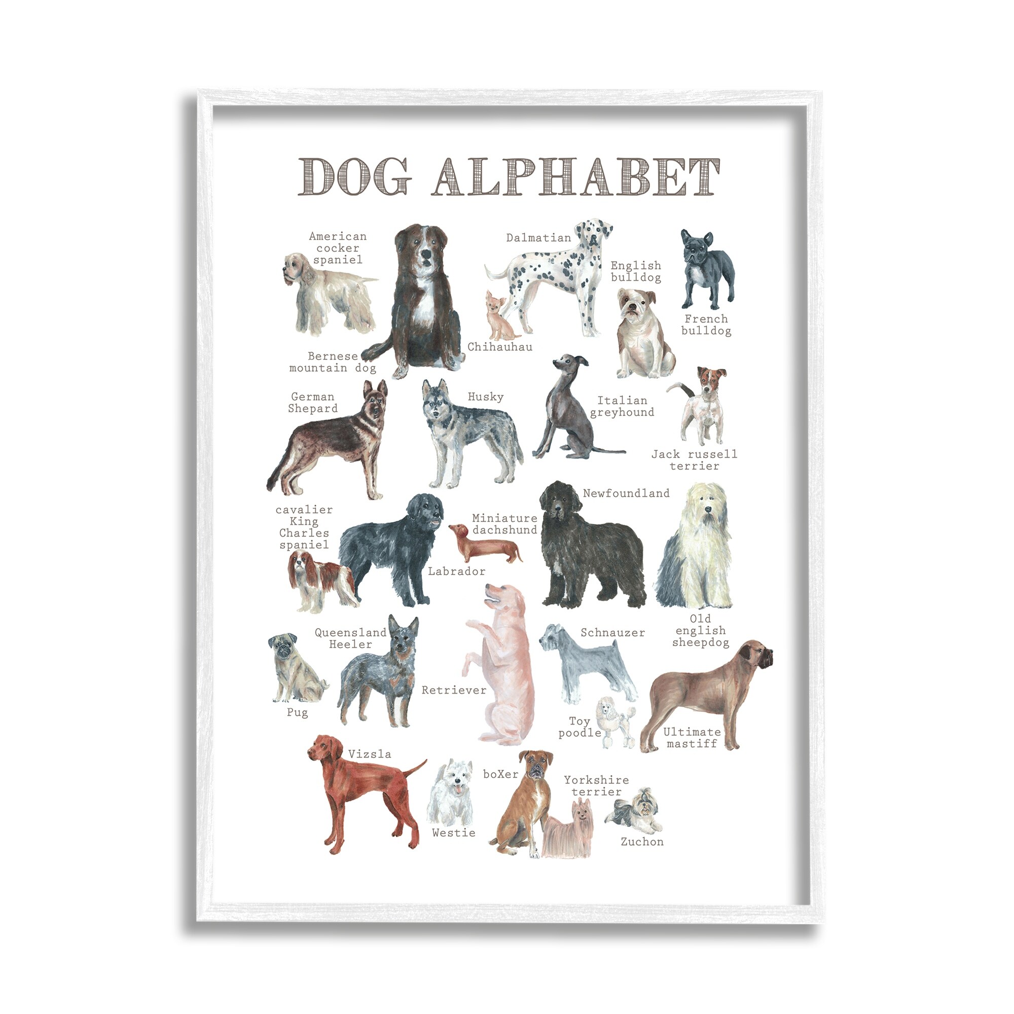 Stupell Industries Dog Alphabet Multiple Breeds Educational Animals Chart Framed Wall Art, Design by Dishique - Multi