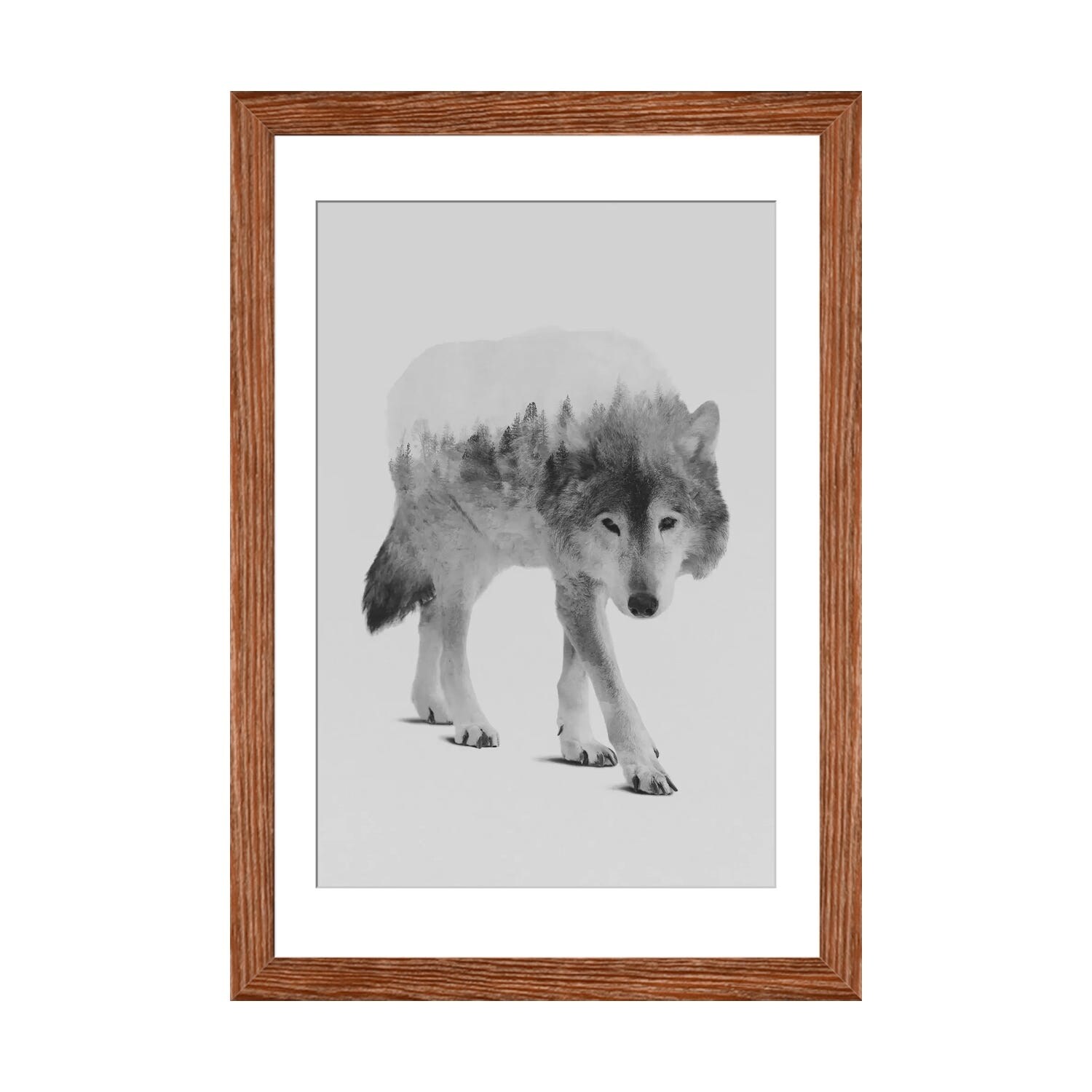 Wolf Print on Wood by Andreas Lie - Multi-Color
