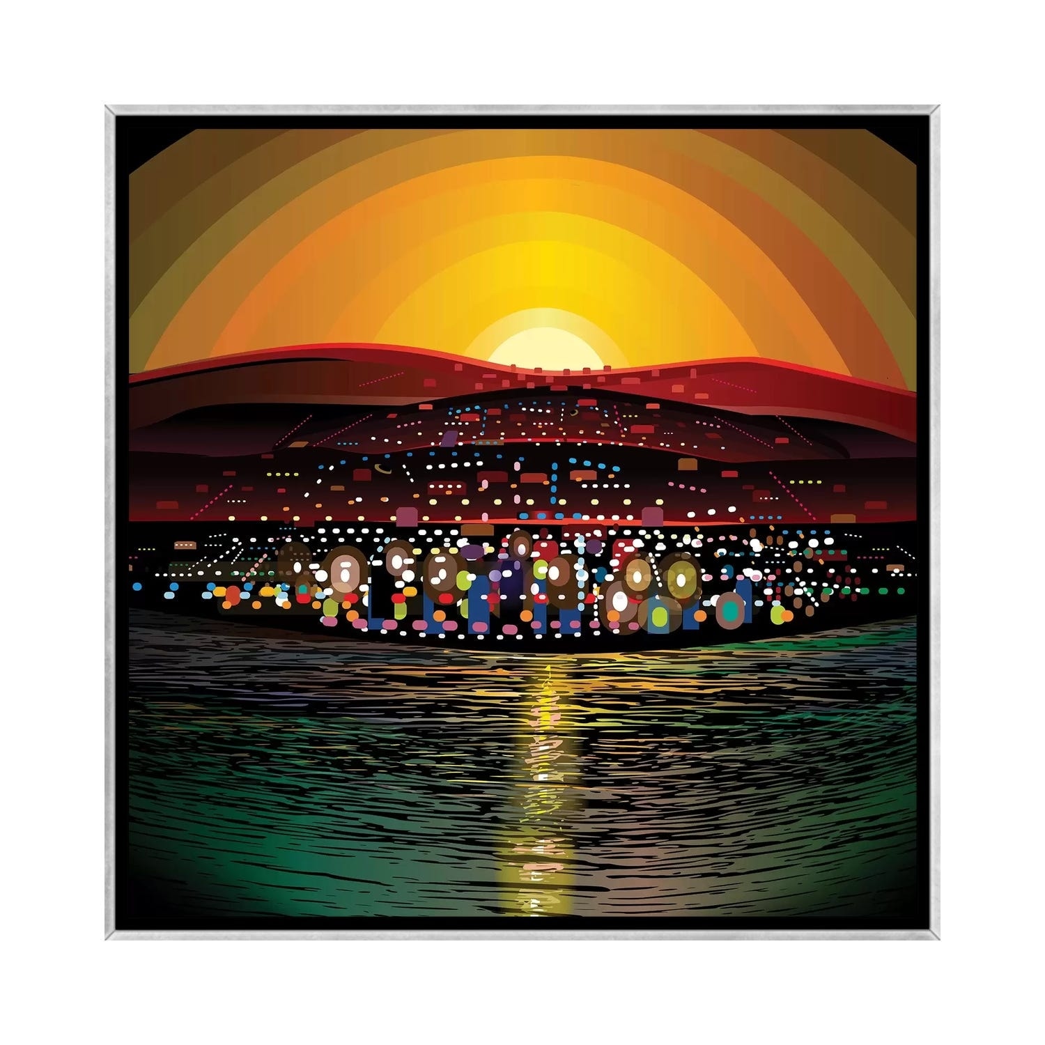 iCanvas "Los Angeles Panoramic Skyline Cityscape (Black & White - Sunset)" by Unknown Artist Framed