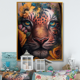 Designart "Tiger Tattoo With Flowers" Animals Framed Canvas Art Print