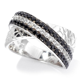 Platinum over Sterling Silver Black Spinel and White Zircon Animal Print Textured Band Ring