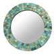 NOVICA Handmade Aqua Trellis Glass Mosaic Mirror (India) - 7.0" Diam.