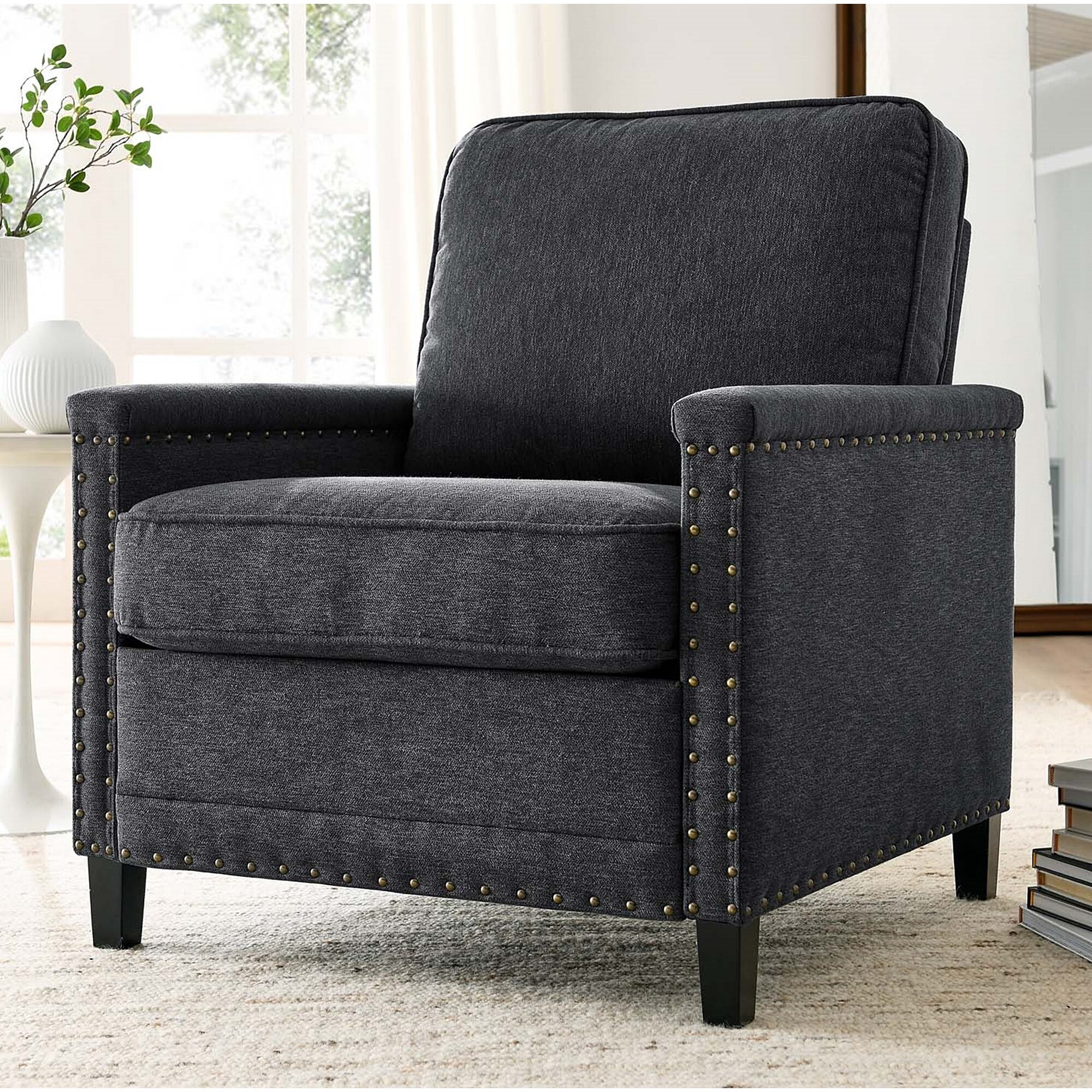 Hermitage Charcoal Fabric Upholstered Arm Chair with Nailhead Trim