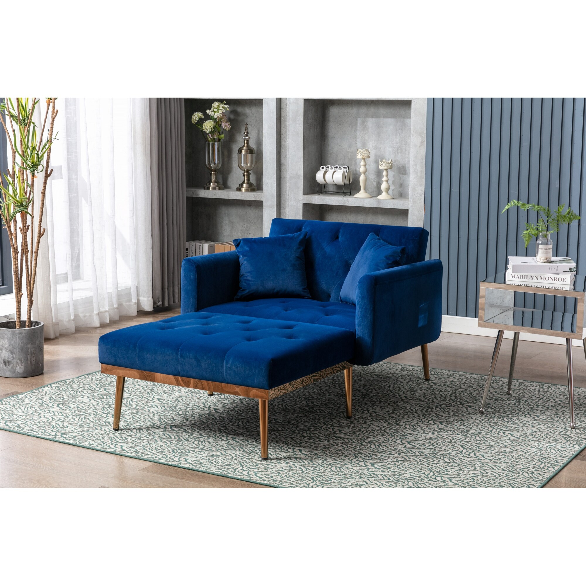 Vintage Tufted Chaise Lounge Velvet Padded Seat Accent Chair Living Room Arm Chairs with Chair & Ottoman Sets and Metal Legs