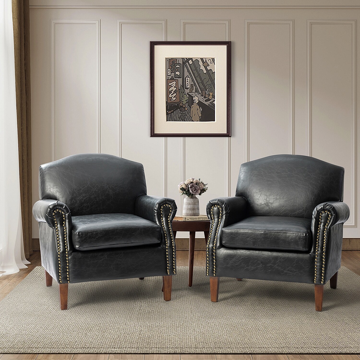 Giampiero Transitional Faux Leather Arm Chair with Nailhead Trim and Rolled Arms Set of 2 by HULALA HOME