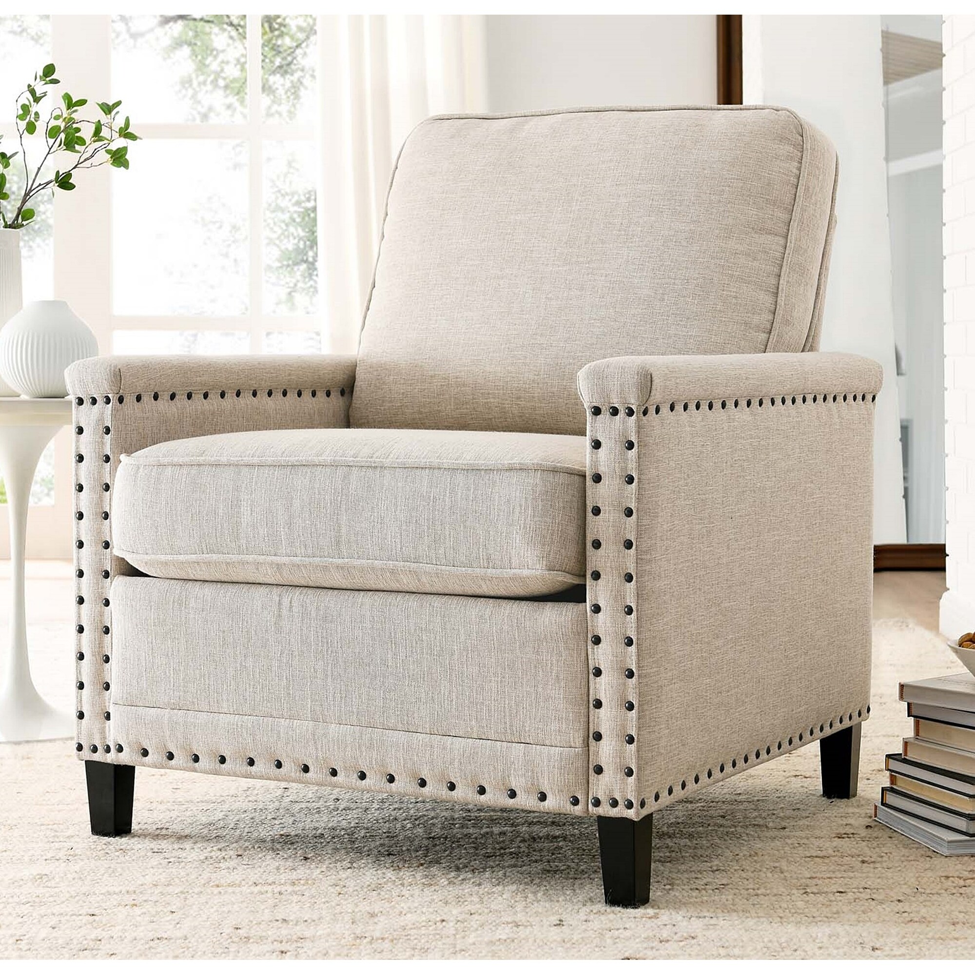Hermitage Beige Fabric Upholstered Arm Chair with Nailhead Trim