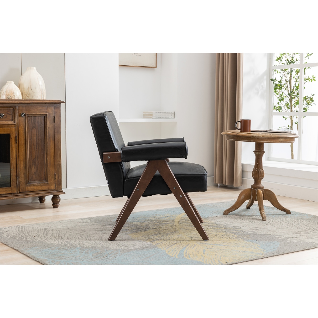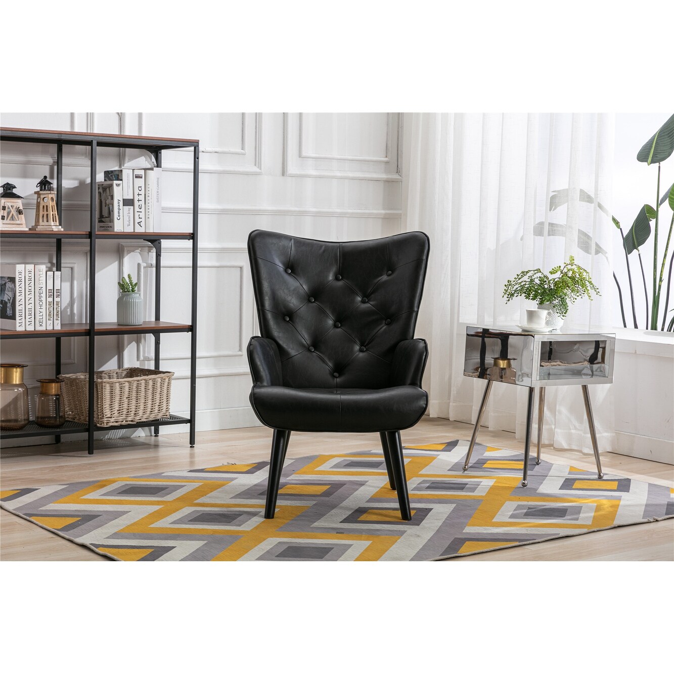 Mid-Century PU Leather Button Lounge Chairs, Modern Solid Wood Armrest Accent Chair, for Living Room Bedroom Studio