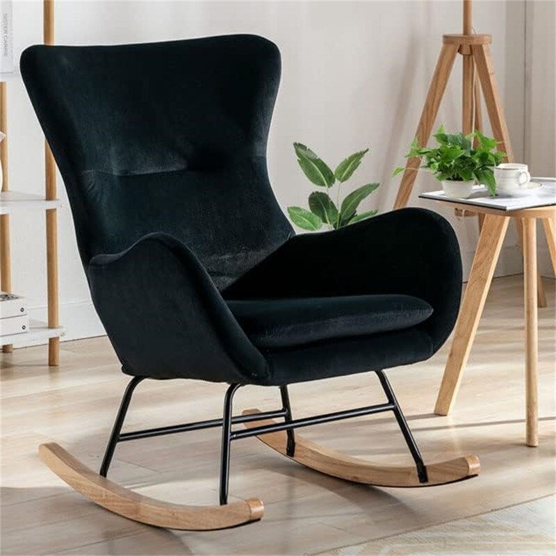 36.6"H Velvet Fabric Padded Seat Rocking Chair With High Backrest And Armrests