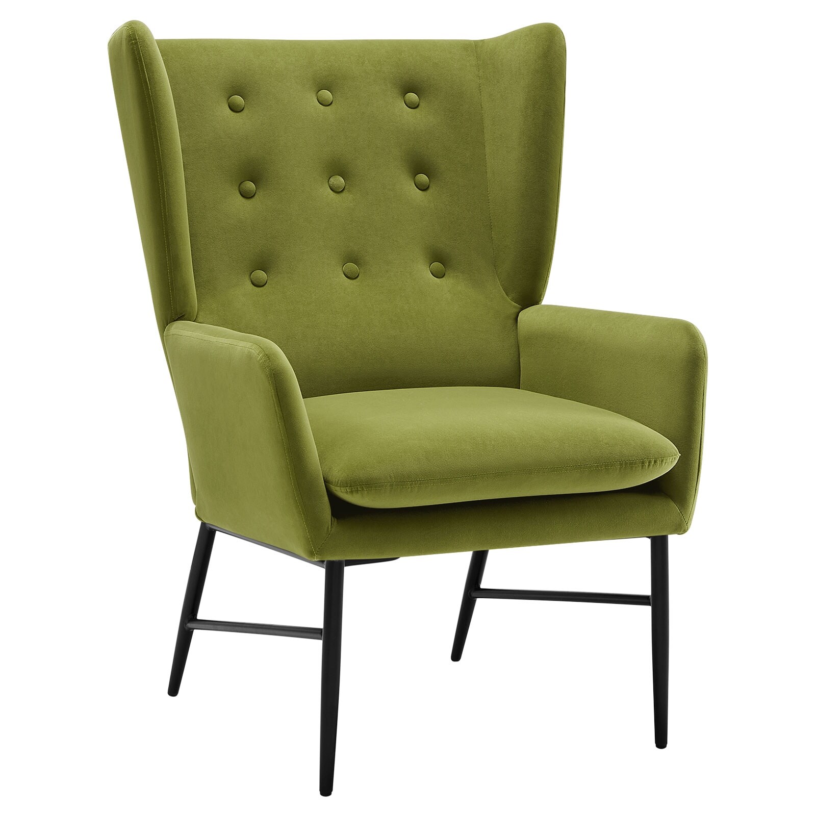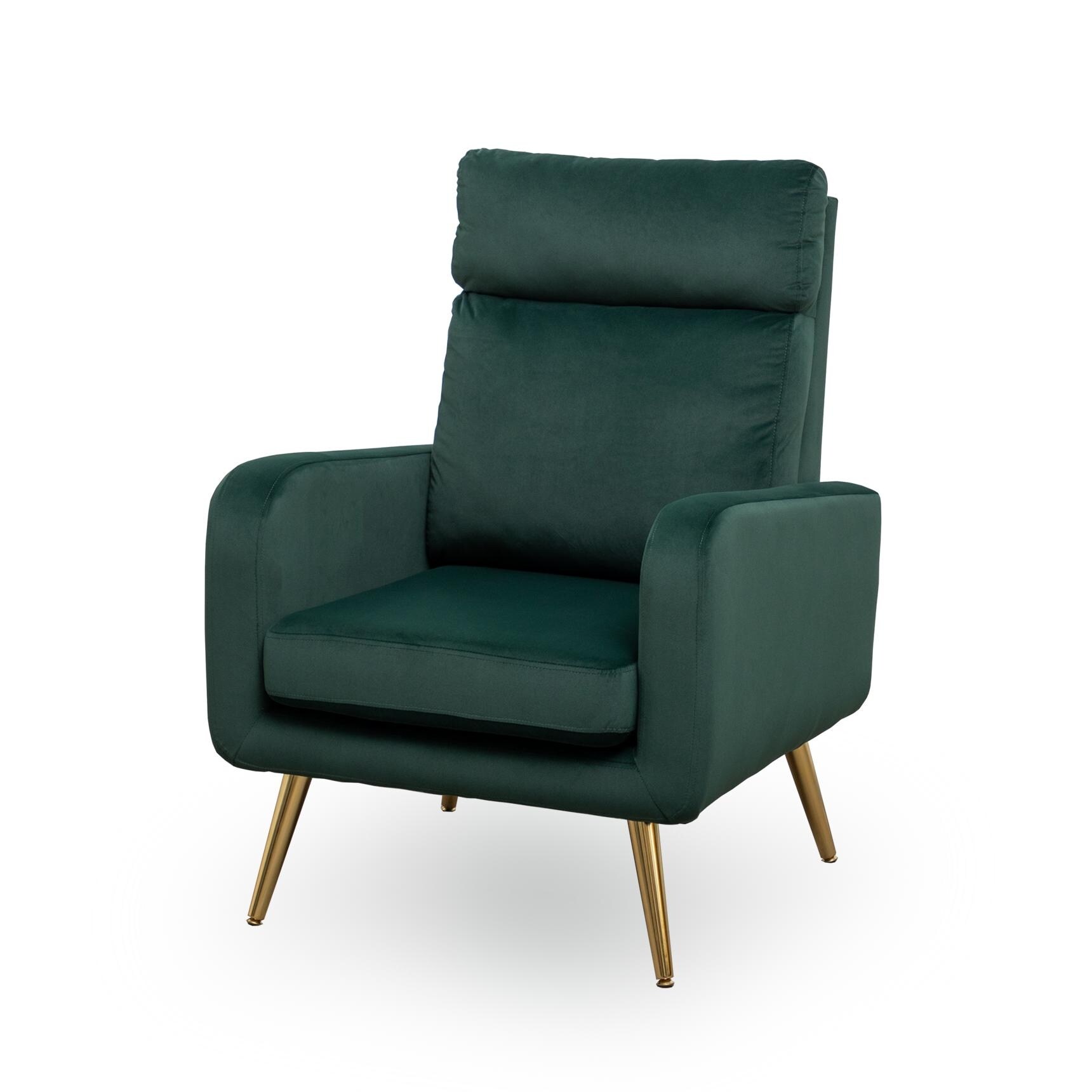 Modern Velvet Upholstered Accent Chair with Armrest & Button Tufted High Back