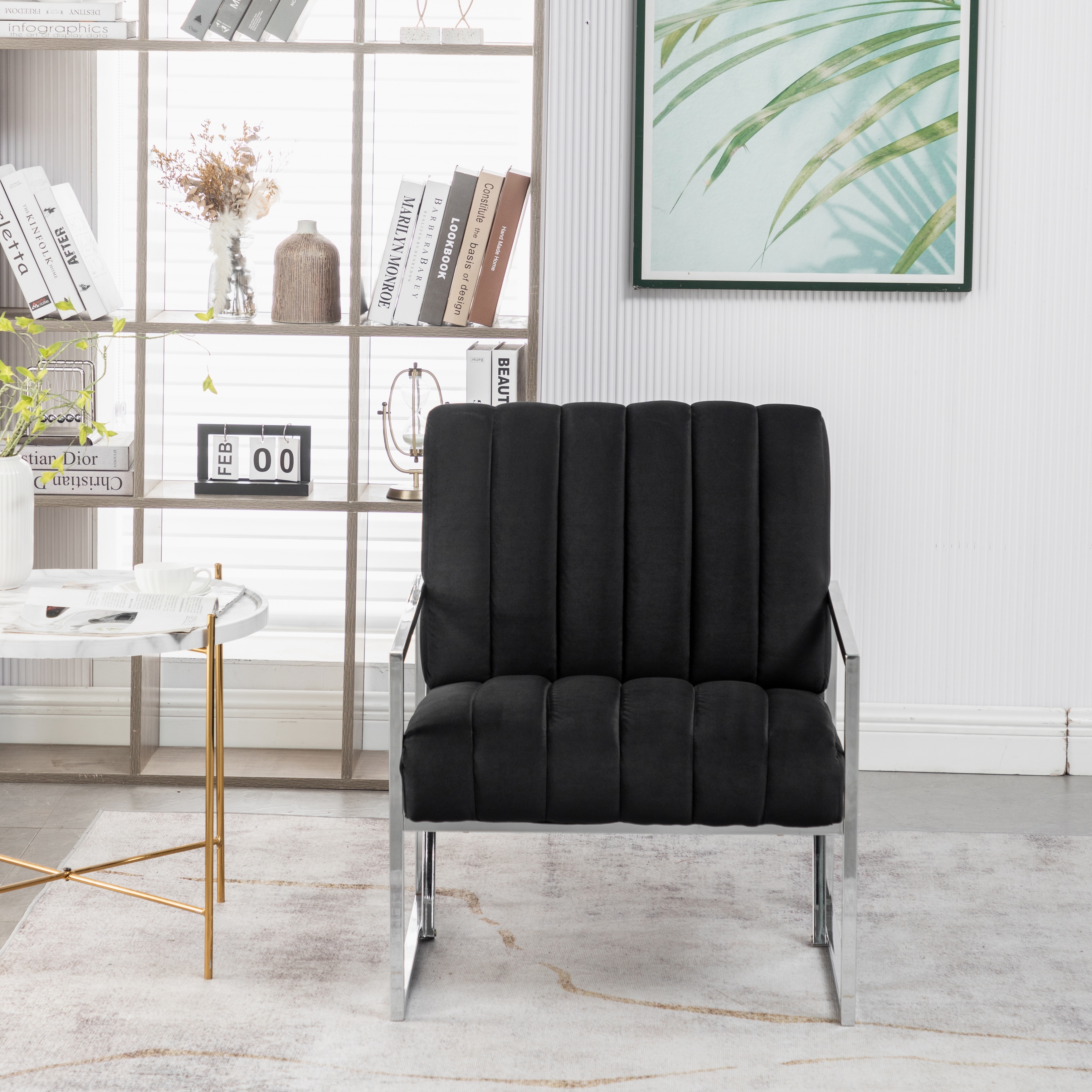 Velvet Accent Chair - Modern Living Room Armchair, Metal Chair Legs, Thickened Seat Cushions, and Comfortable Armrests.