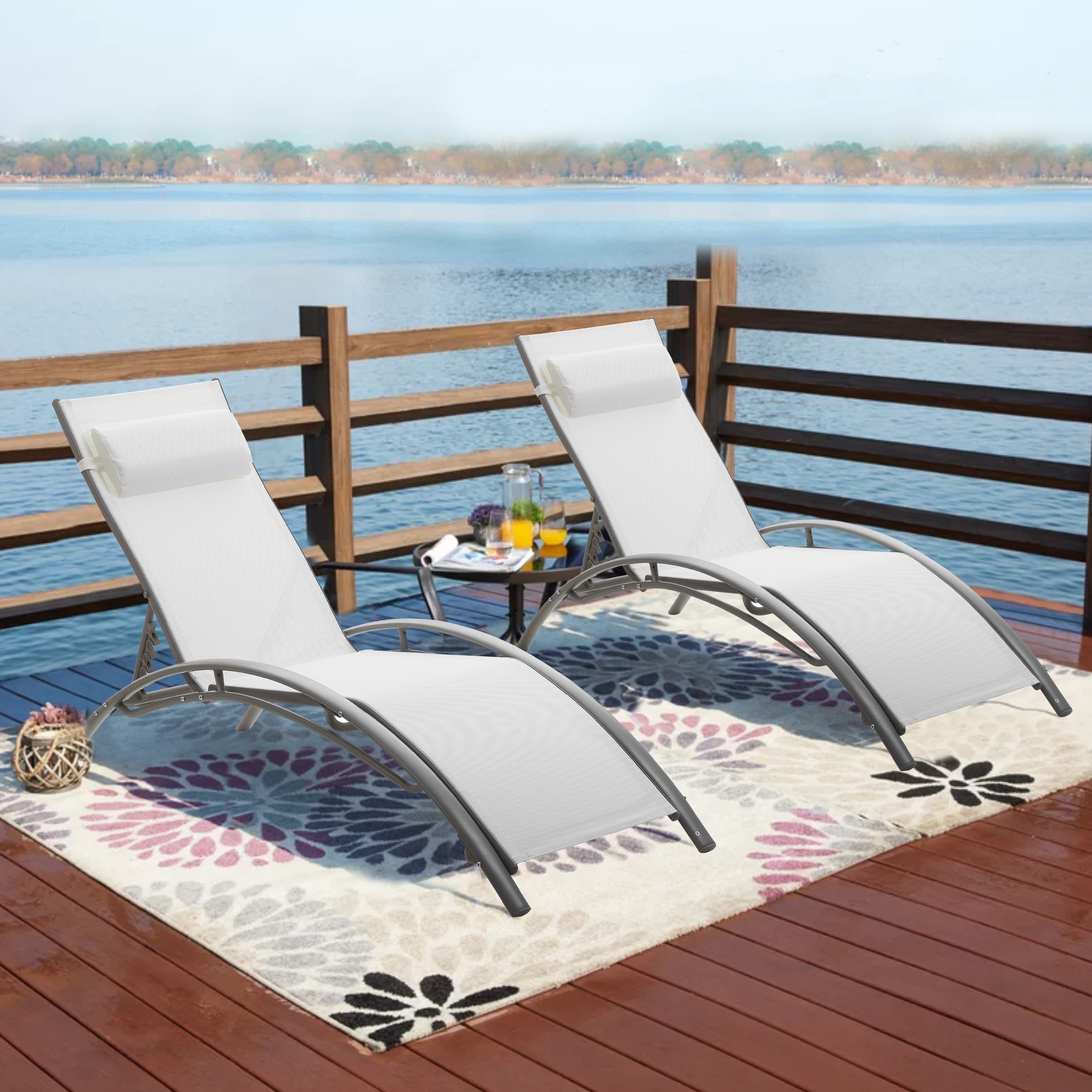 Ainfox 2 Pcs Chaise Lounge with Headrest and Armrest Outdoor Recliner Backyard Chair