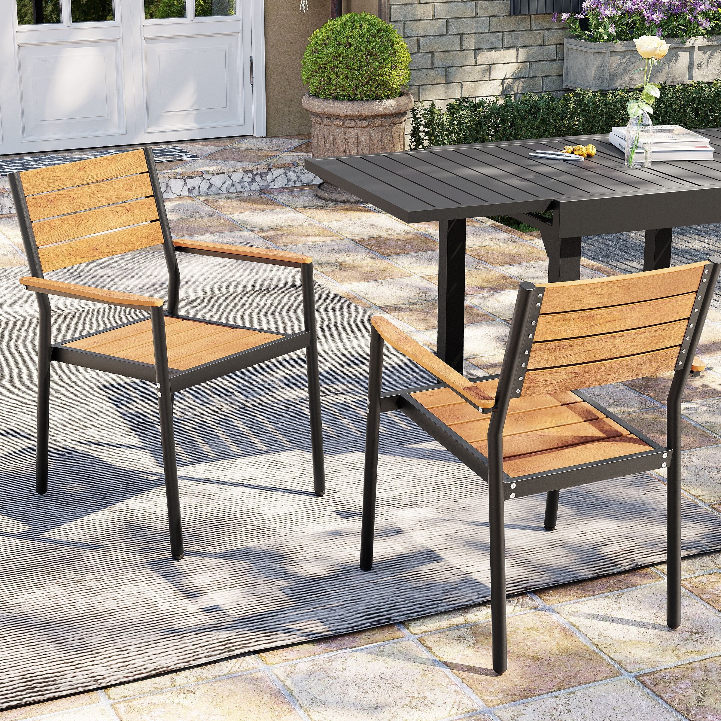 Set of 2 Patio Dining Chairs Set with Steel Frame and Armrest