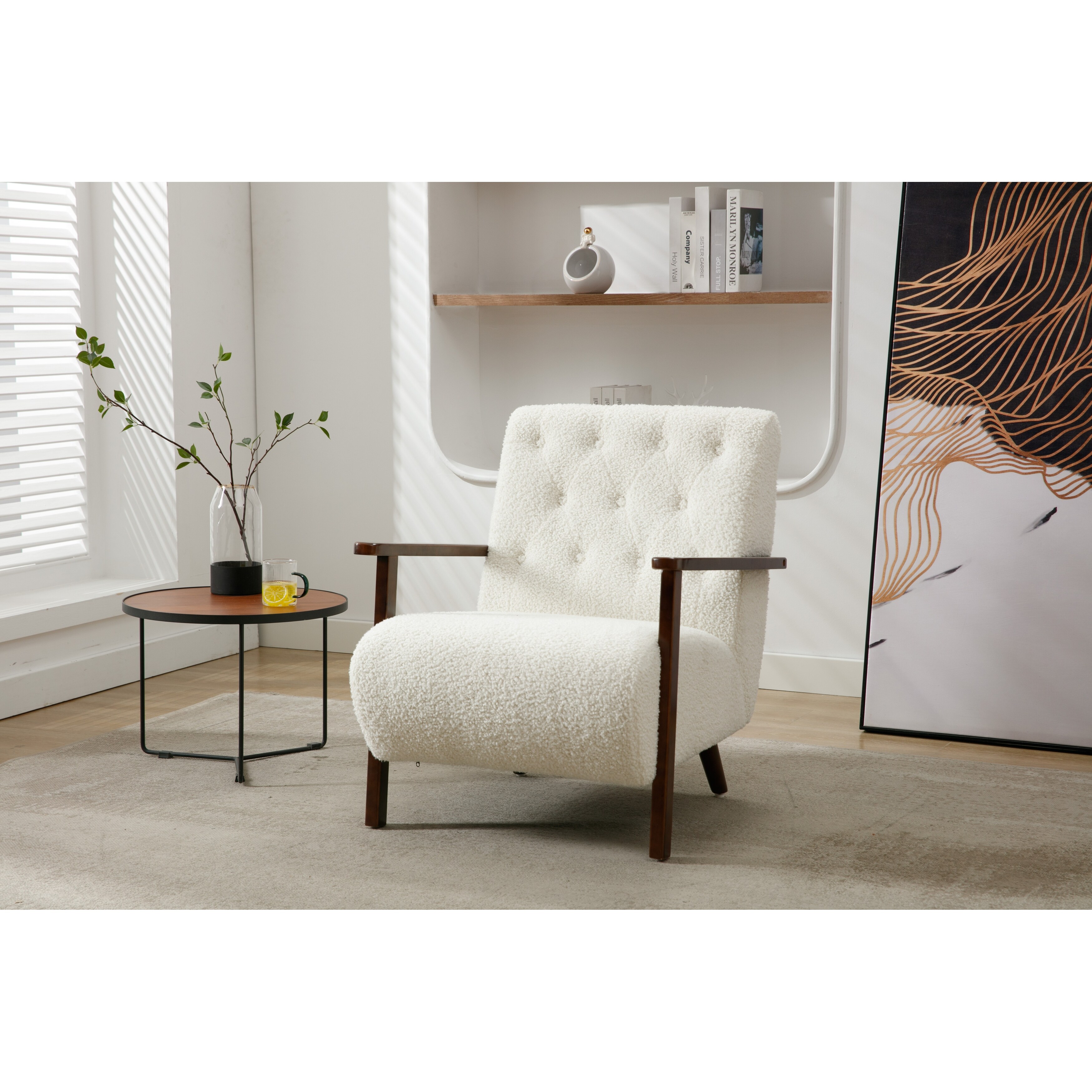 Mid-Century Modern Leisure Chair - Solid Wood Armrest and Feet, Ideal for Living Room, Bedroom, and Studio