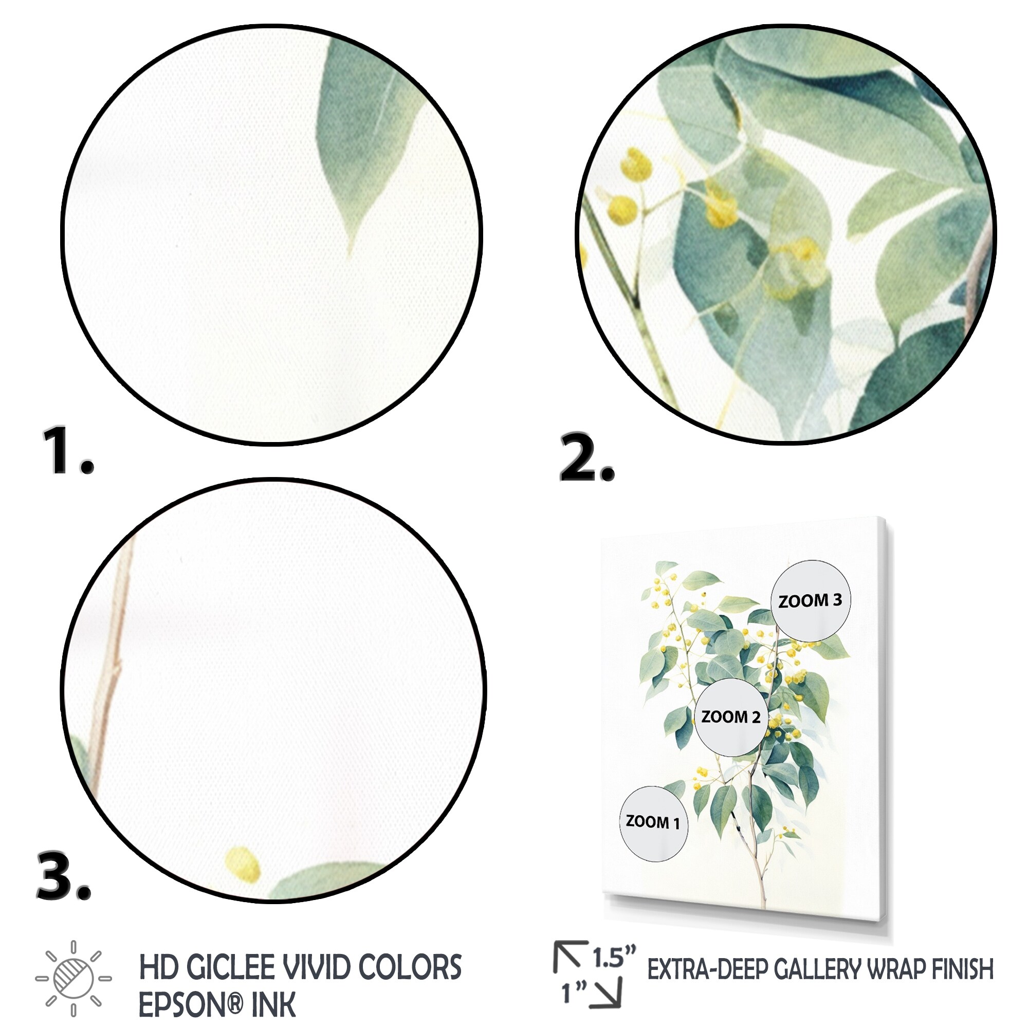Designart "White Green Minimalism Eucalyptus Essence IX" Leaves Framed Canvas Wall Art
