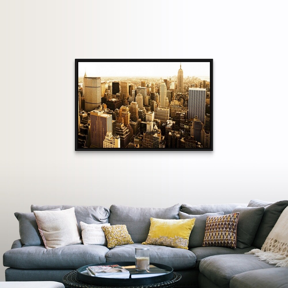 "Manhattan from top of rock." Black Float Frame Canvas Art